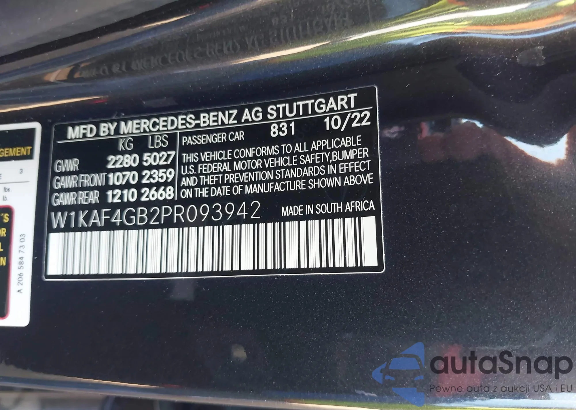• VIN W1KAF4GB2PR093942