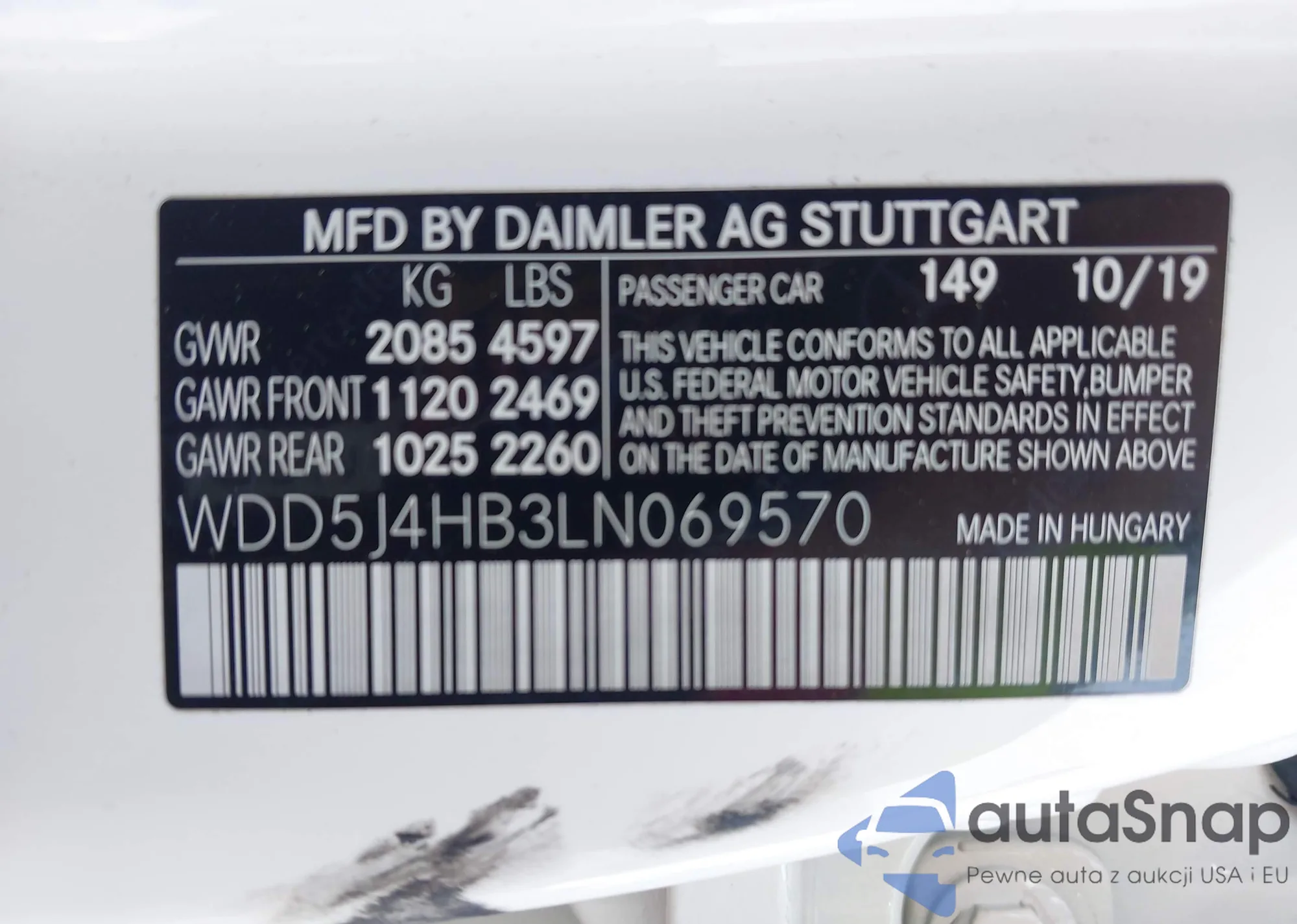 • VIN WDD5J4HB3LN069570