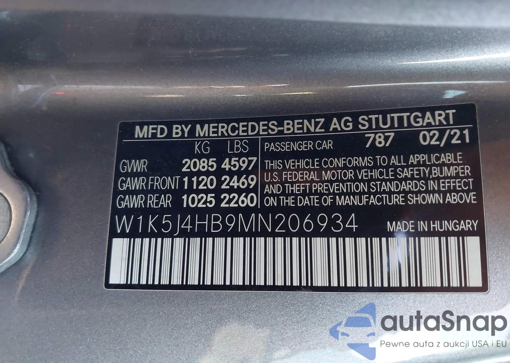• VIN W1K5J4HB9MN206934