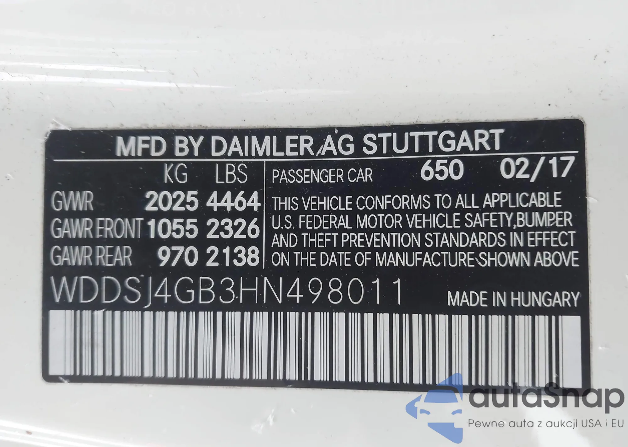 LOT: 44000575 VIN: WDDSJ4GB3HN498011