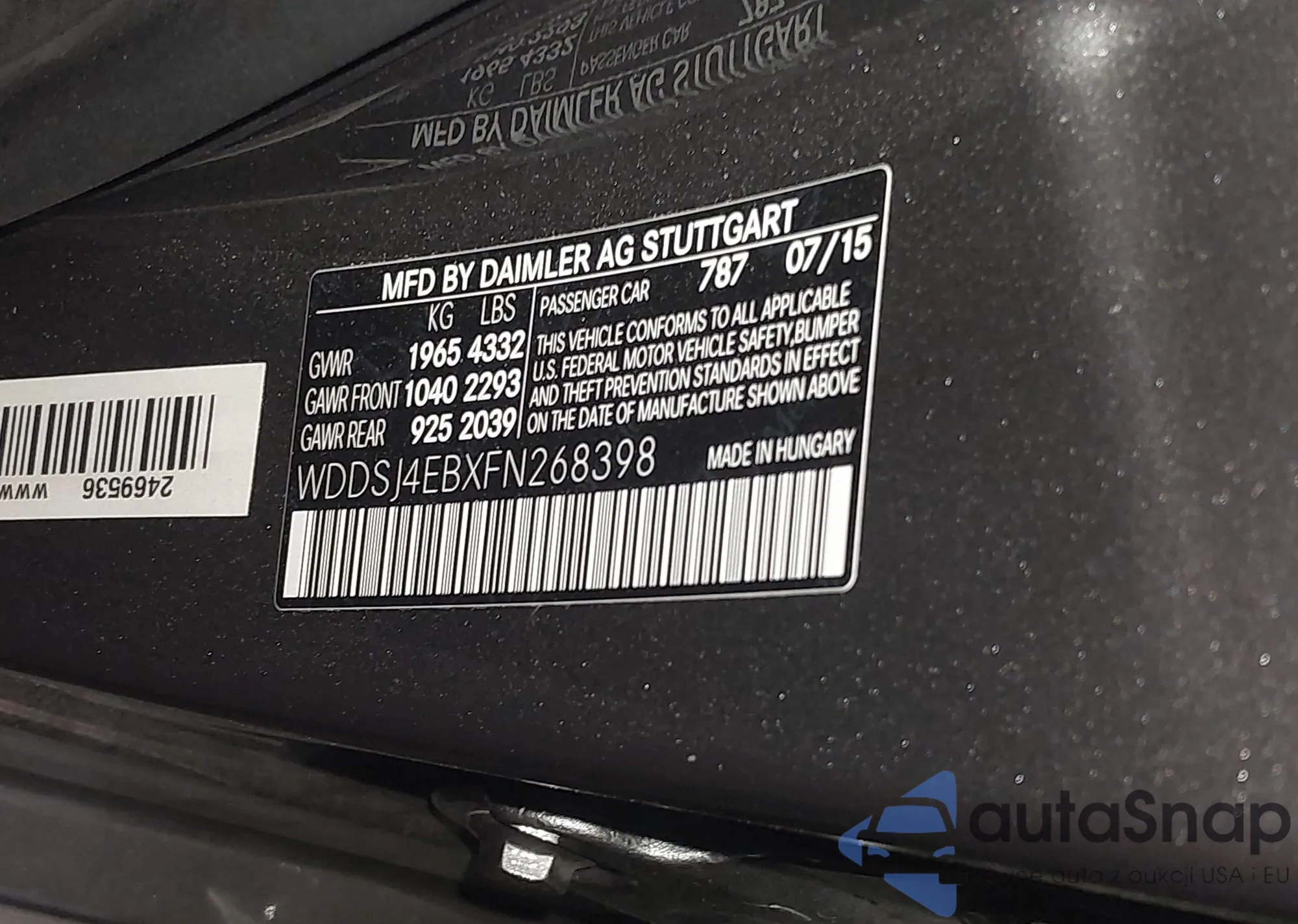 • VIN WDDSJ4EBXFN268398