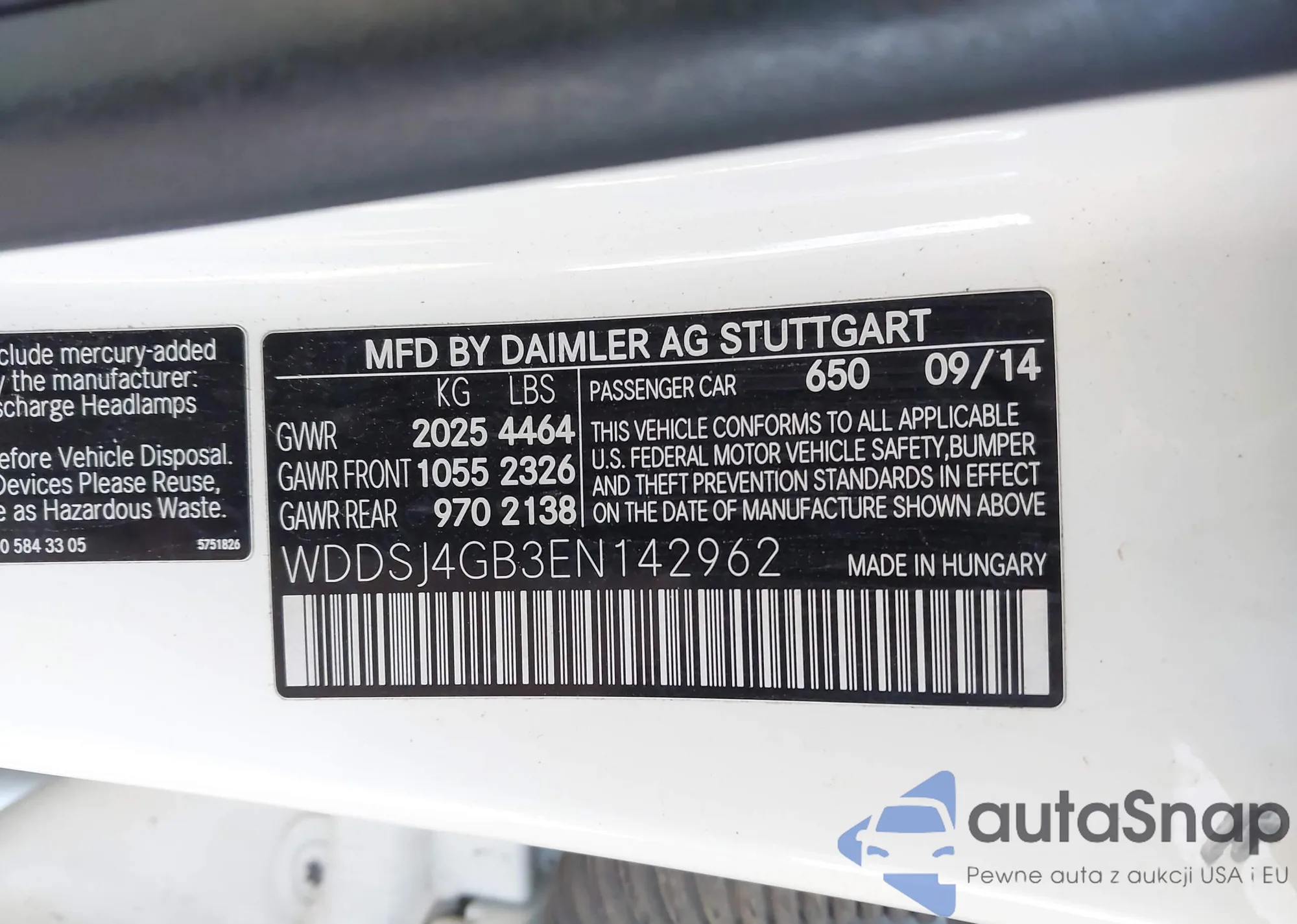 • VIN WDDSJ4GB3EN142962