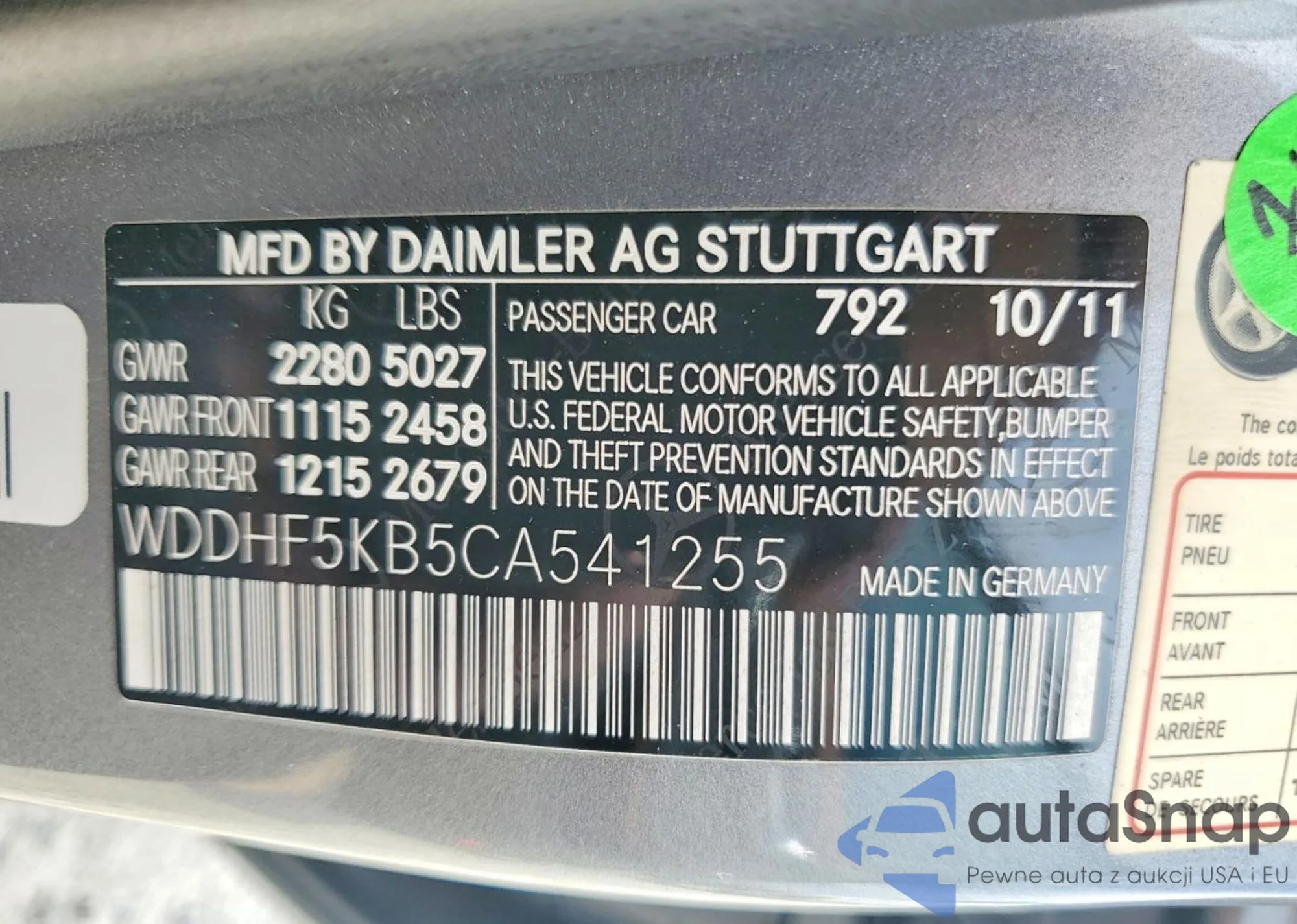 • VIN WDDHF5KB5CA541255