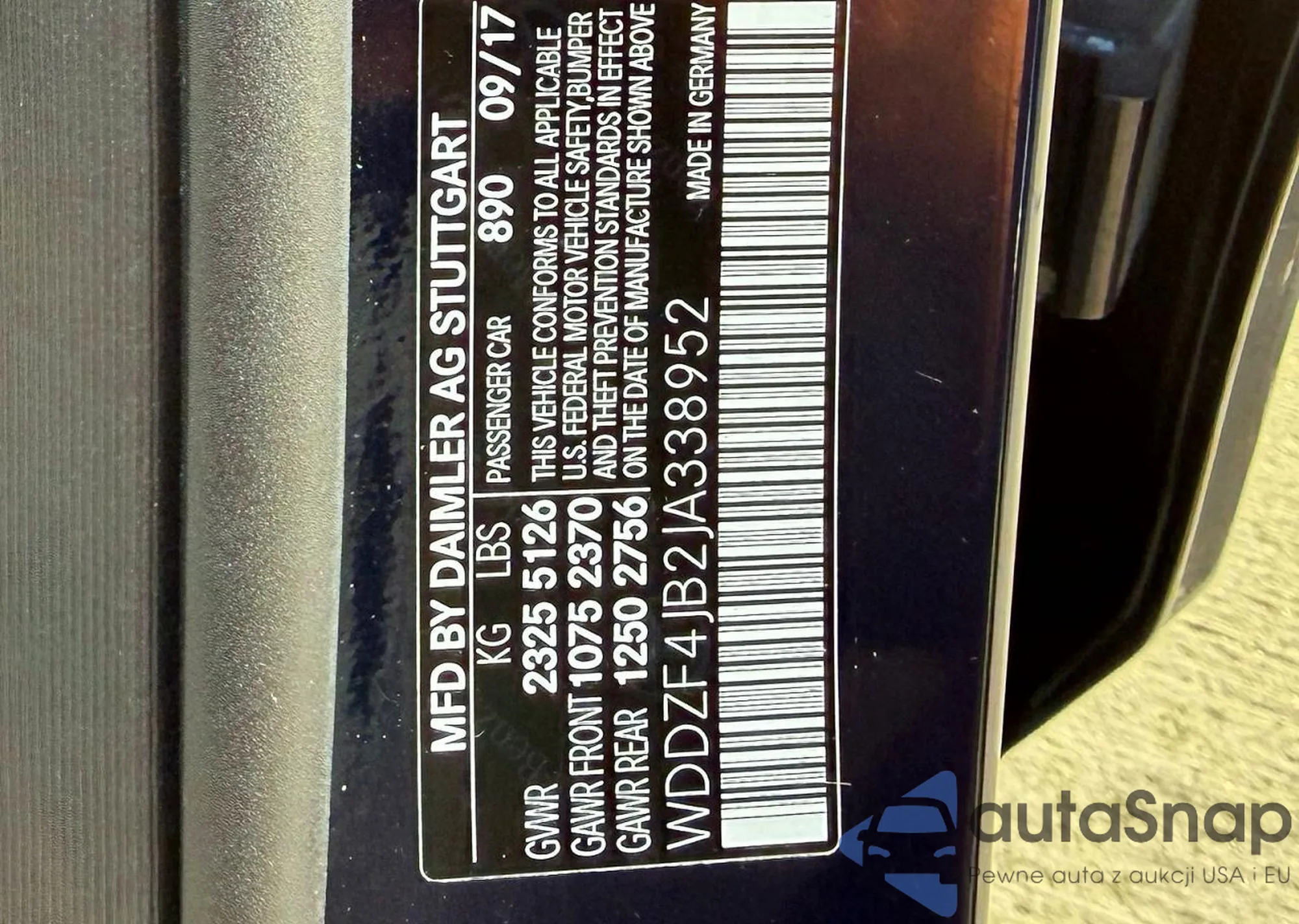 LOT: 47772546 VIN: WDDZF4JB2JA338952