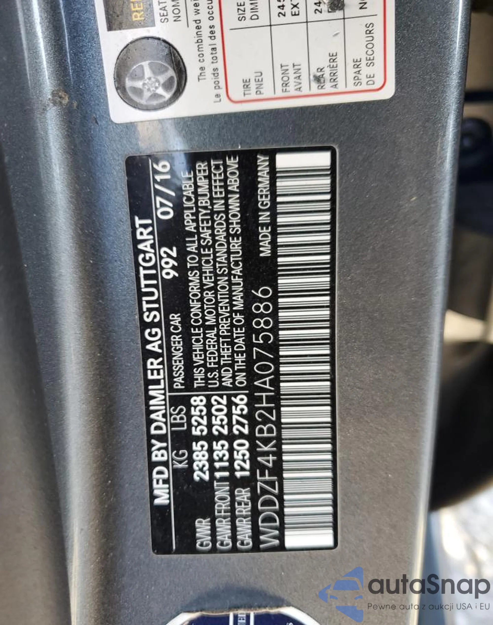 • VIN WDDZF4KB2HA075886
