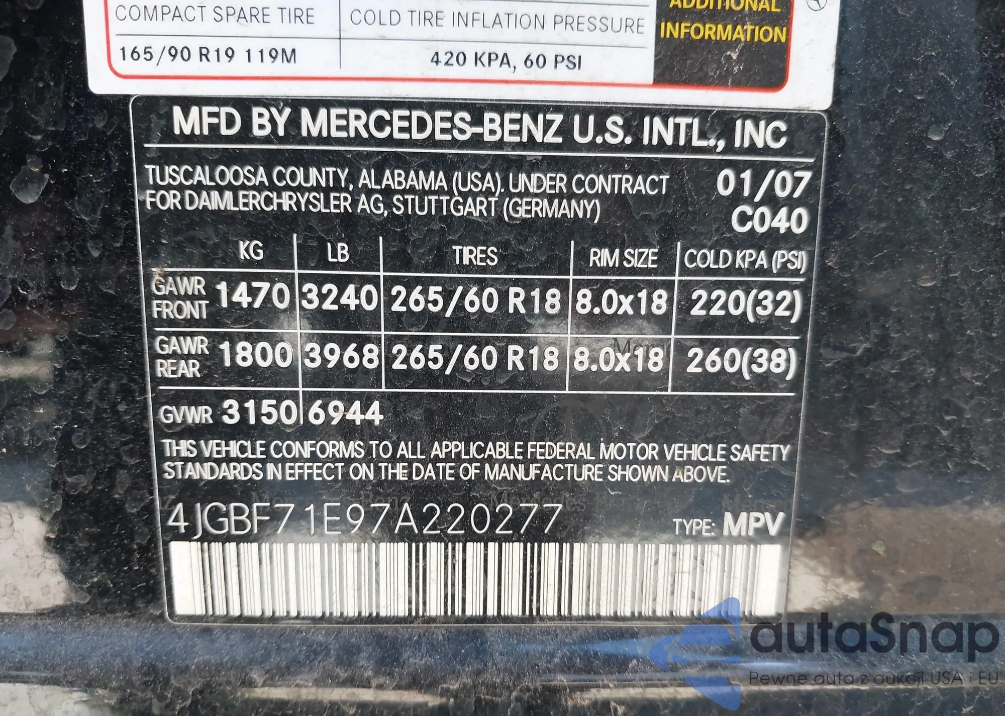 • VIN 4JGBF71E97A220277