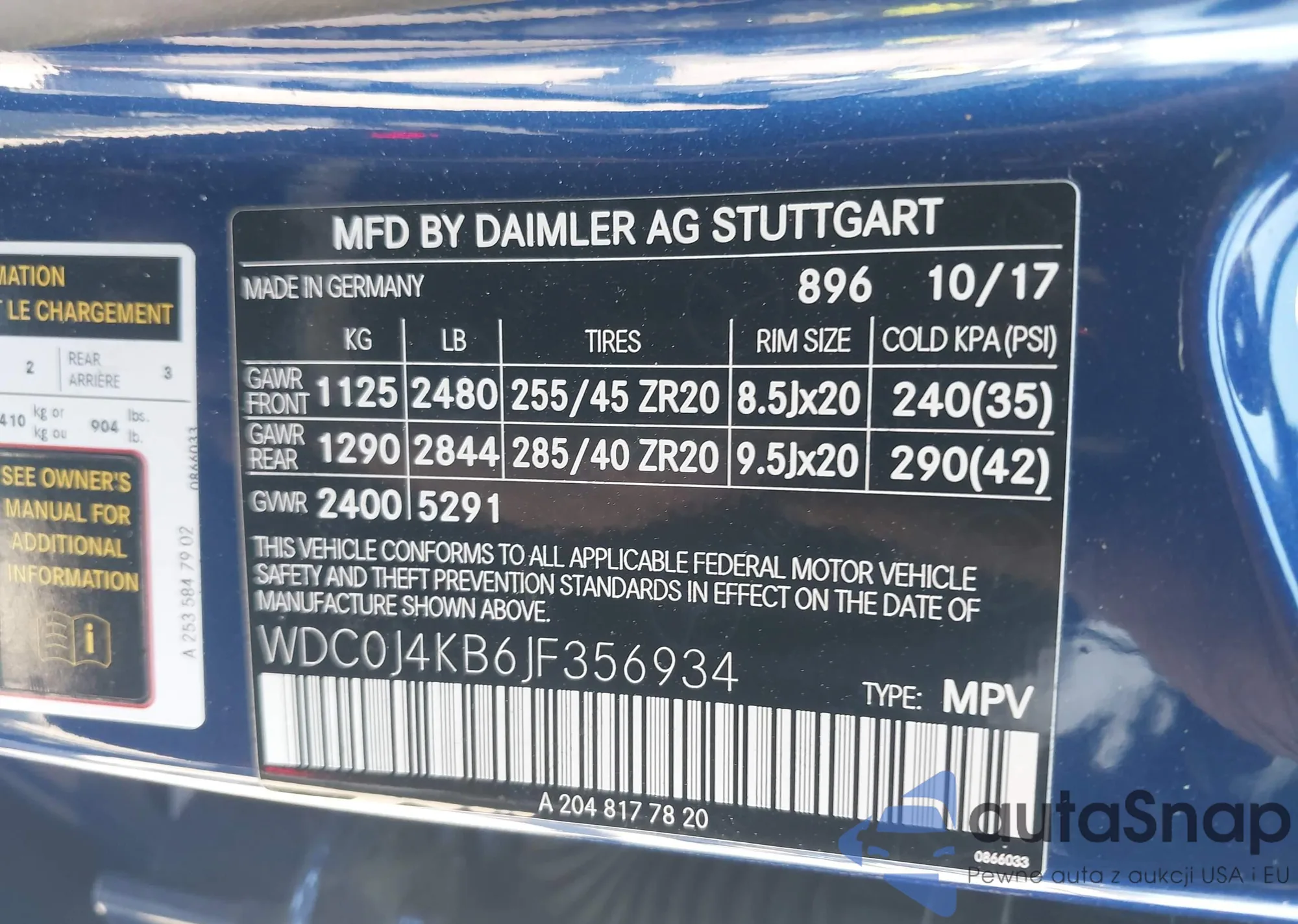 • VIN WDC0J4KB6JF356934
