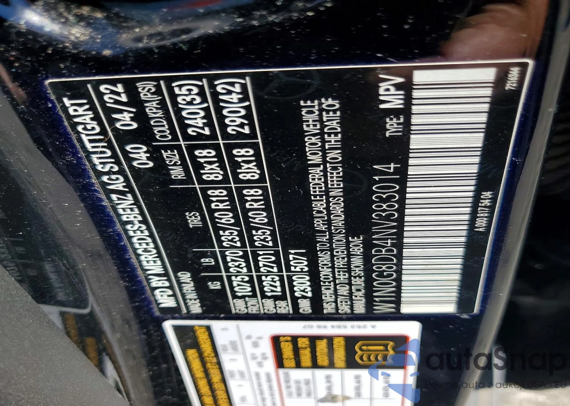 • VIN W1N0G8DB4NV383014
