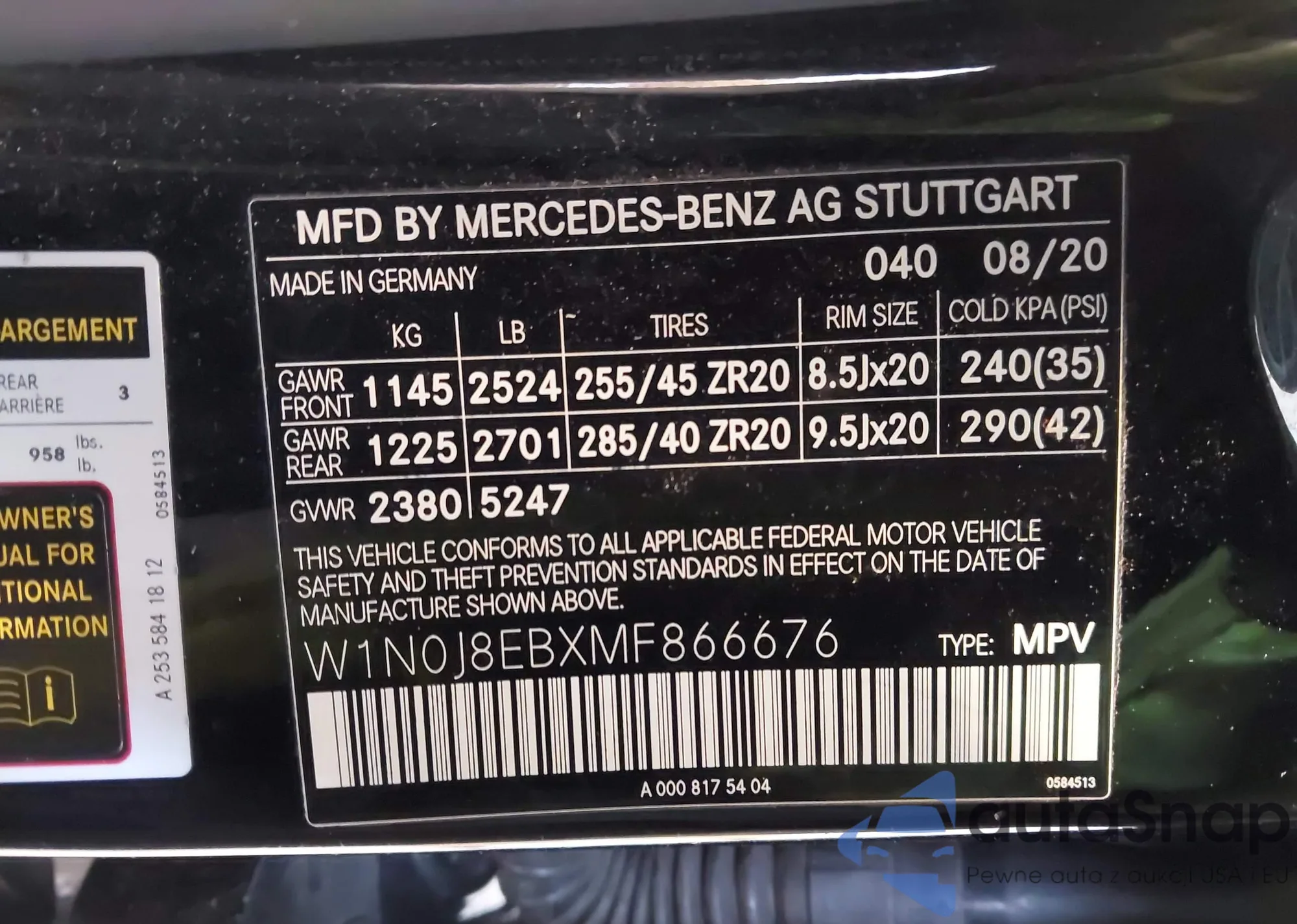 • VIN W1N0J8EBXMF866676