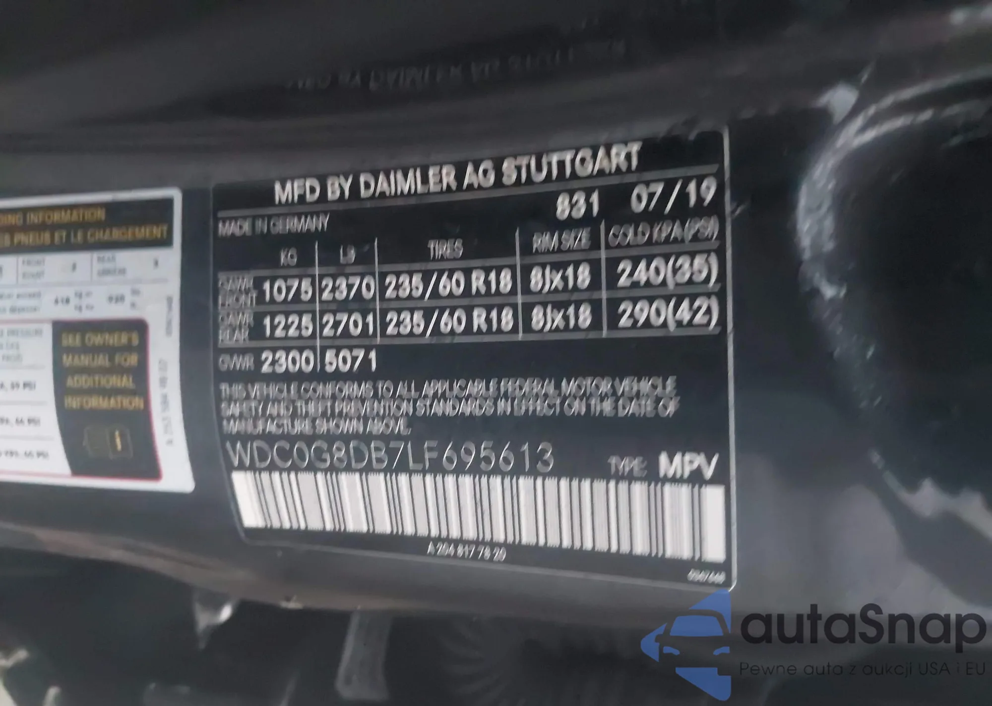 • VIN WDC0G8DB7LF695613