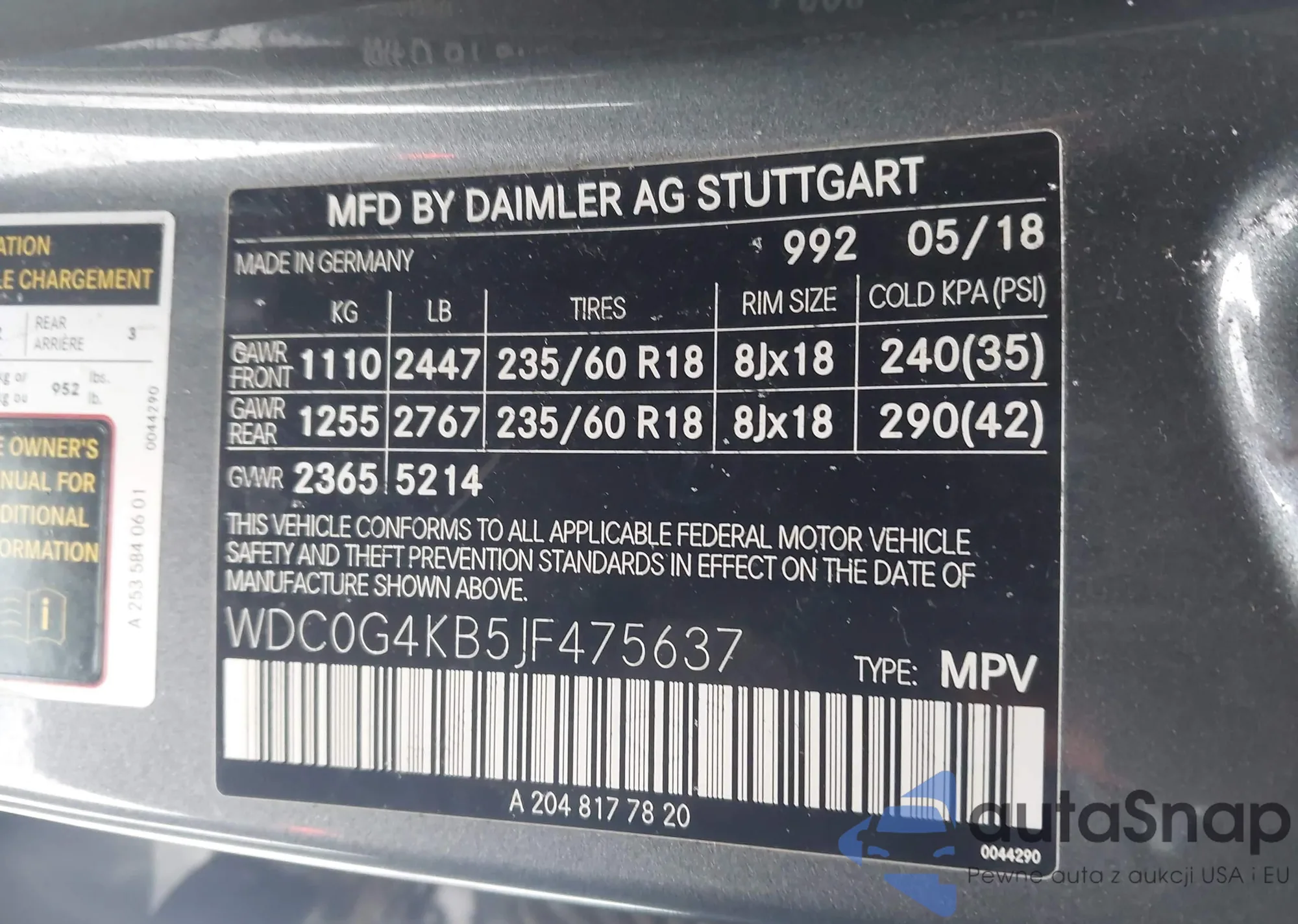 • VIN WDC0G4KB5JF475637