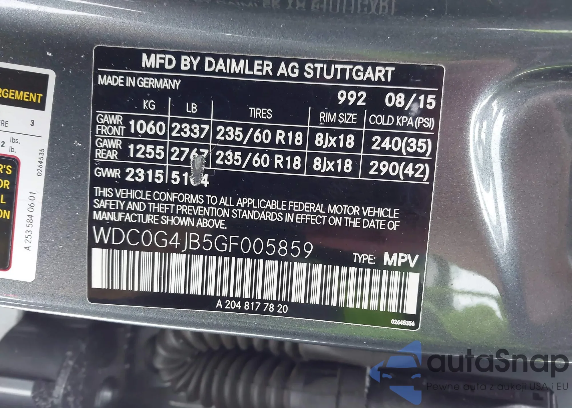 • VIN WDC0G4JB5GF005859