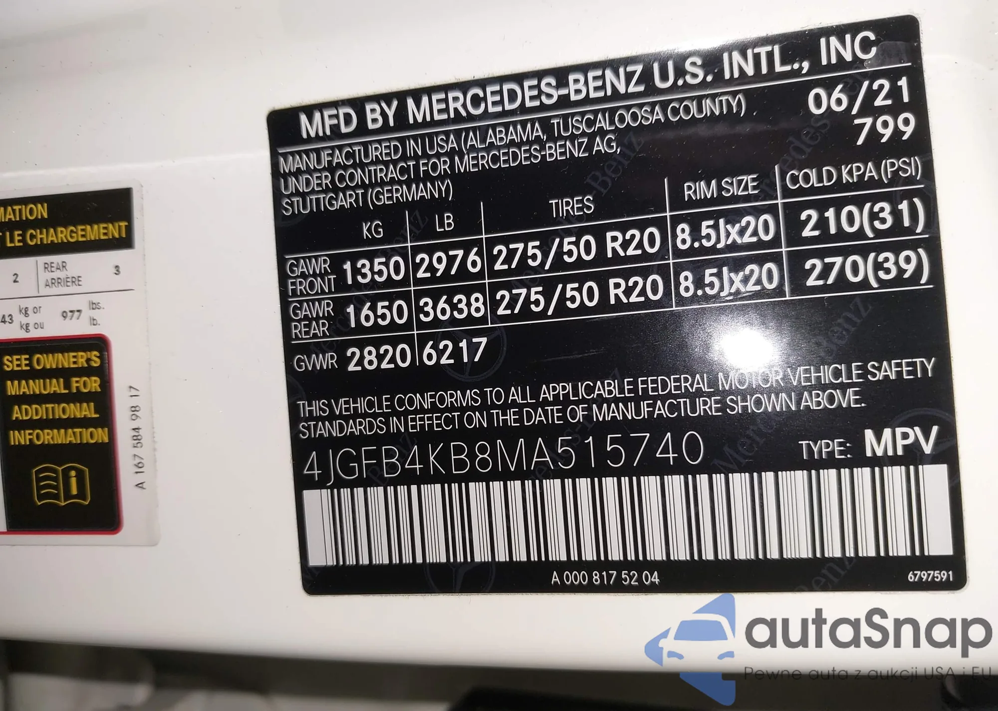 • VIN 4JGFB4KB8MA515740