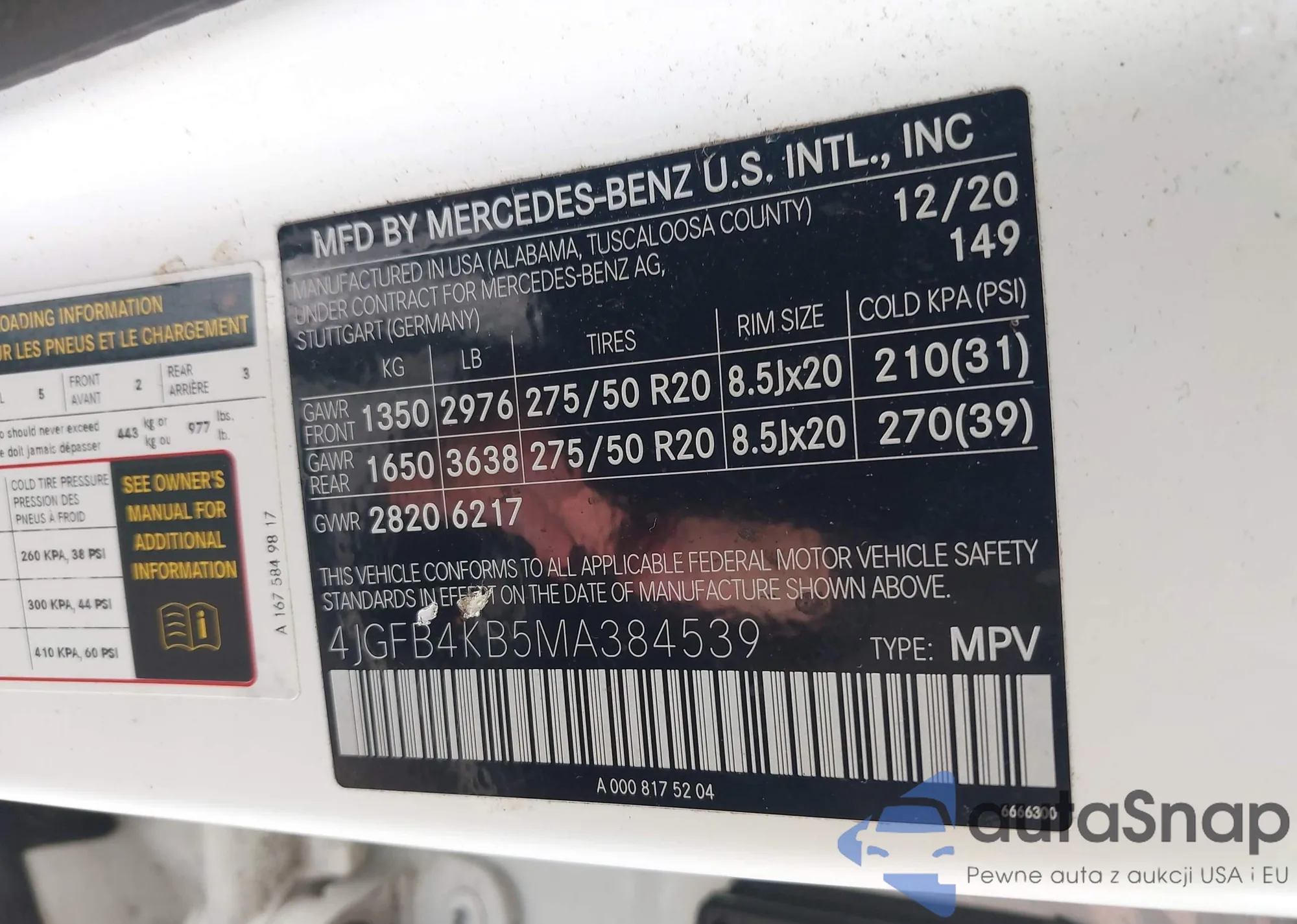 • VIN 4JGFB4KB5MA384539