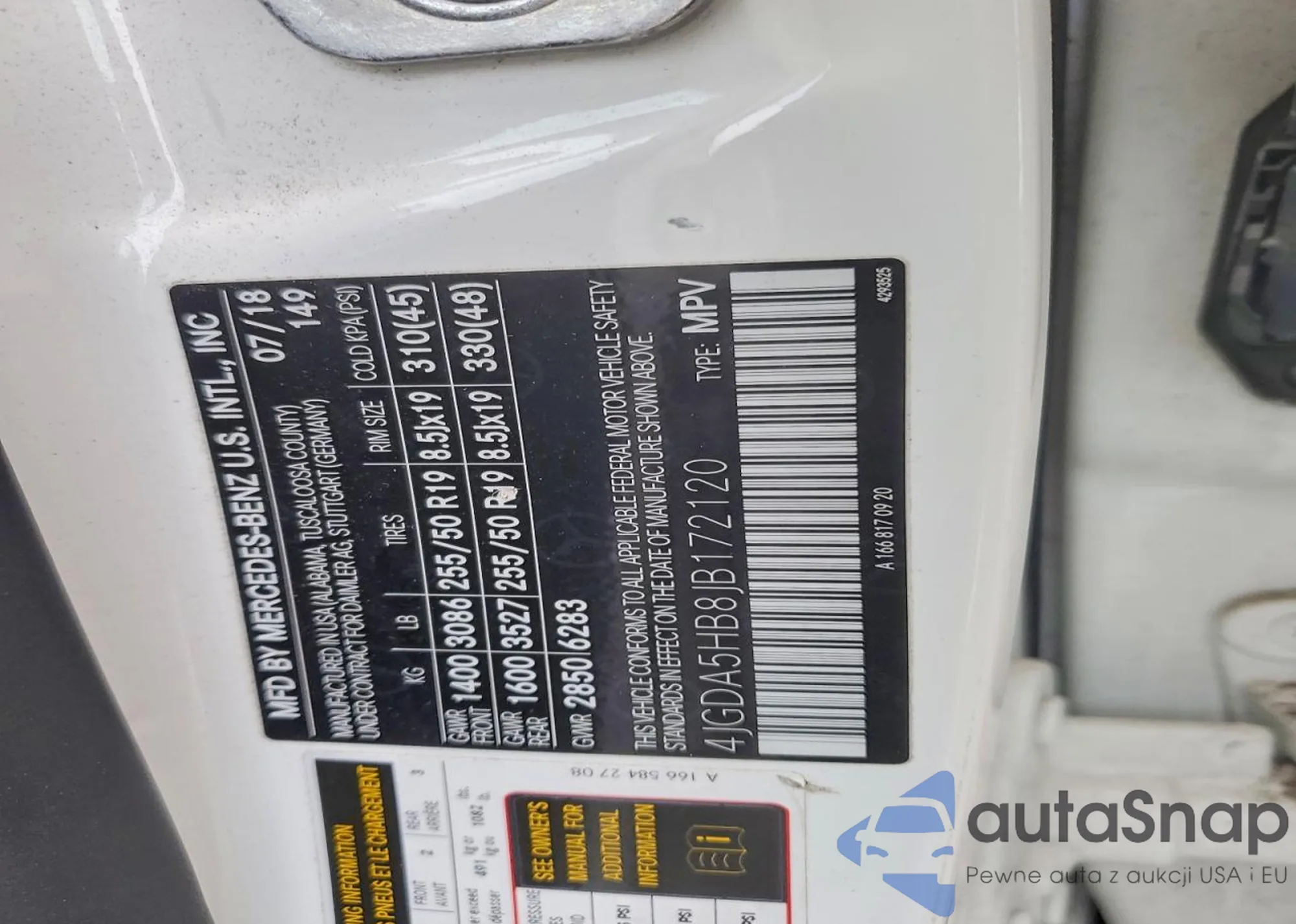 • VIN 4JGFB4KB5MA307489