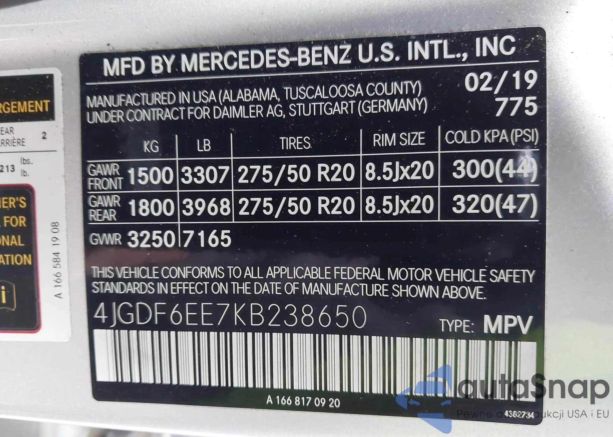 • VIN 4JGDF6EE7KB238650