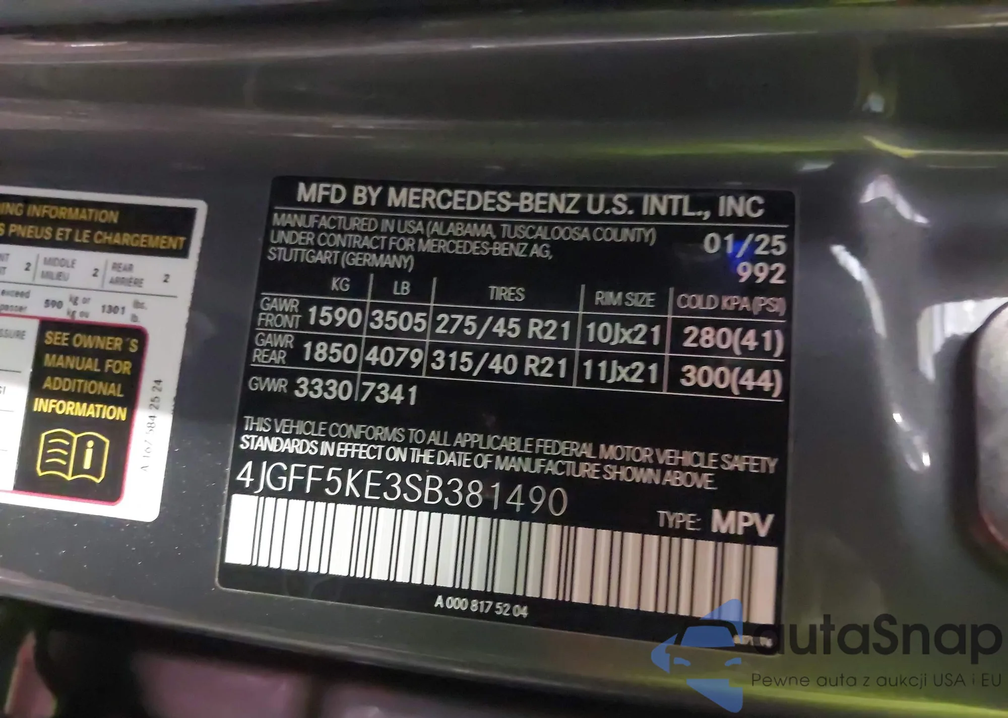 • VIN 4JGFF5KE3SB381490