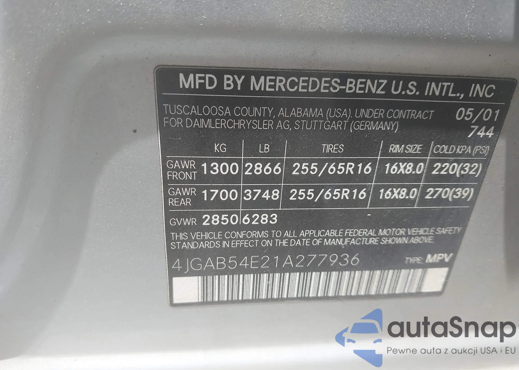 • VIN 4JGAB54E21A277936