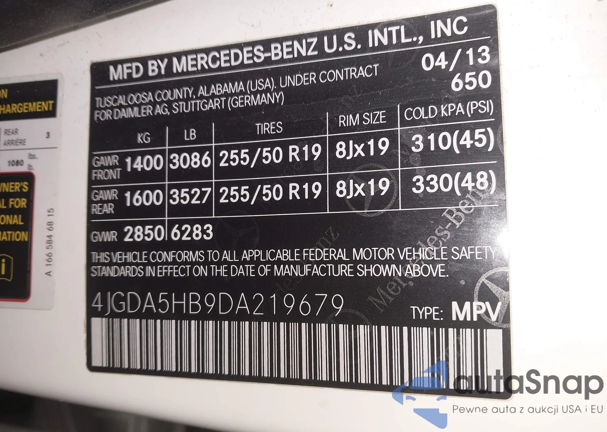 • VIN 4JGDA5HB9DA219679