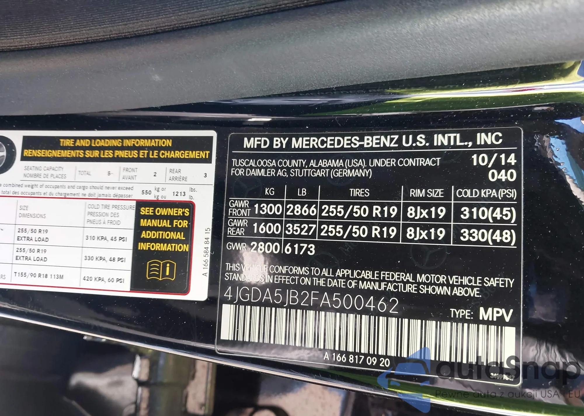 • VIN 4JGDA5JB2FA500462