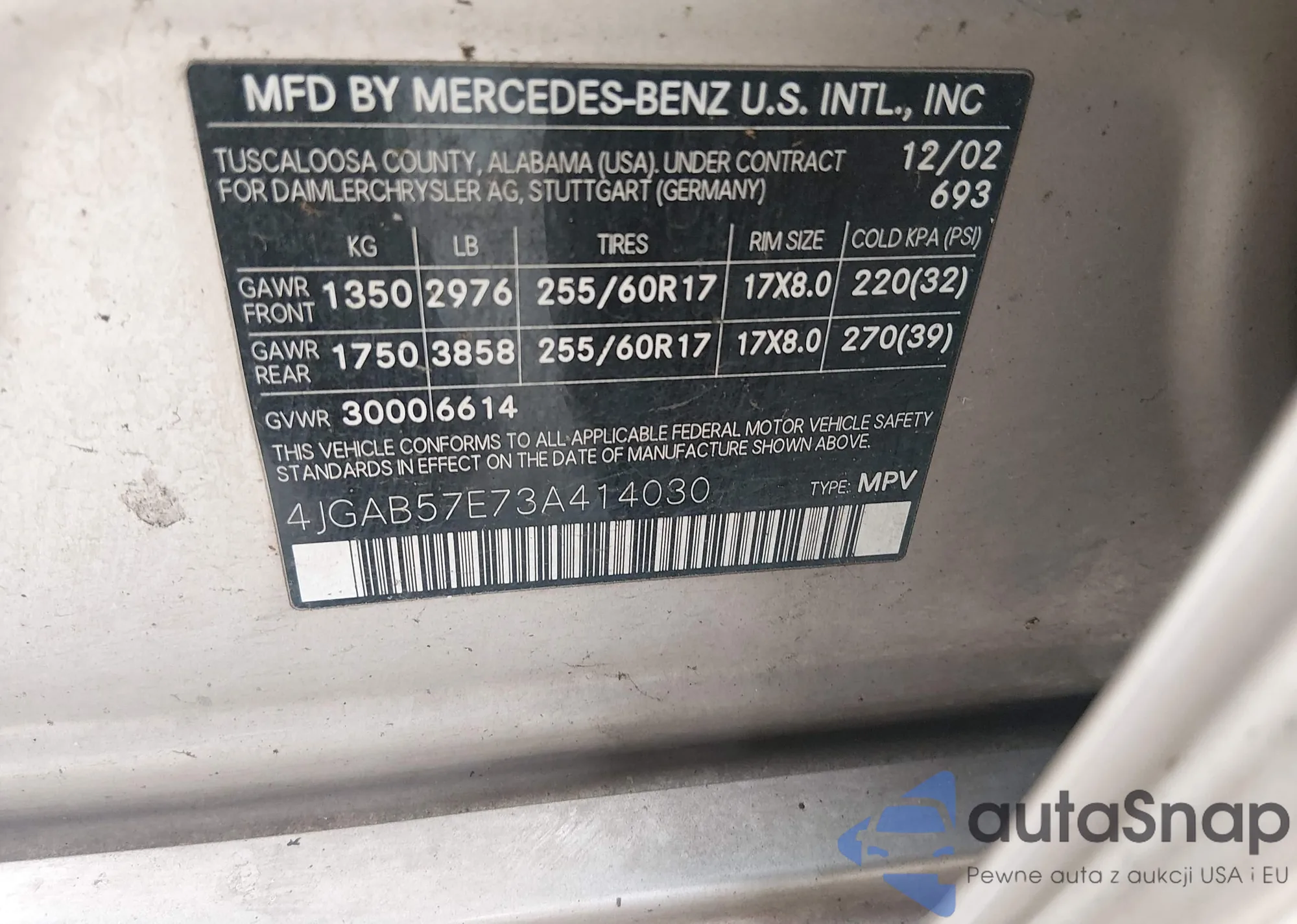 • VIN 4JGAB57E73A414030
