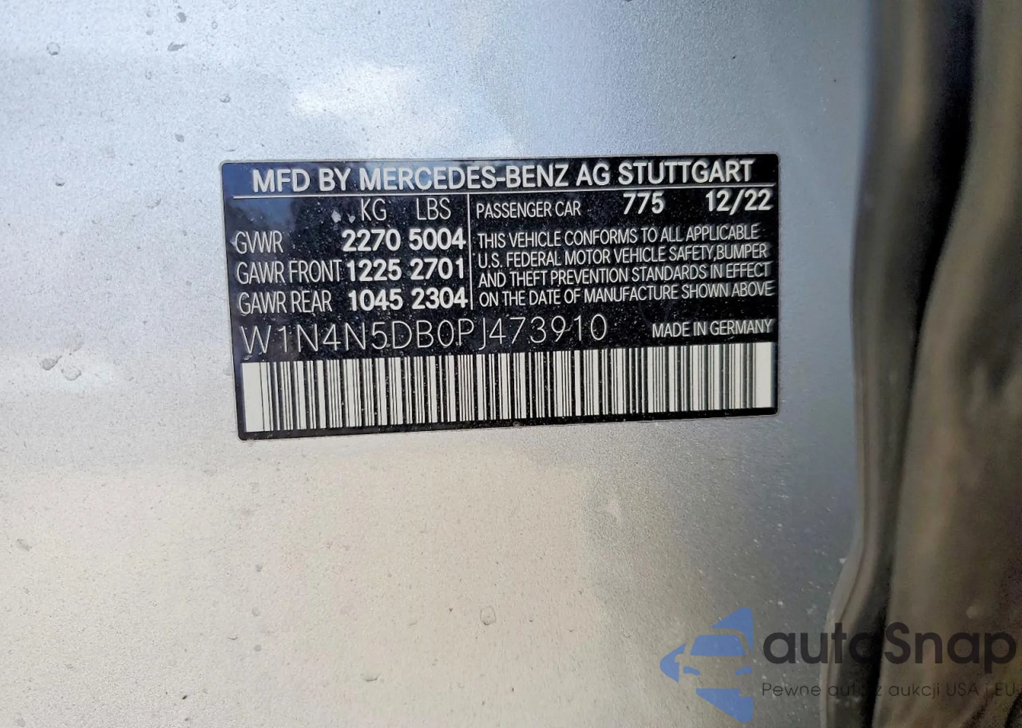 • VIN W1N4N5DB0PJ473910