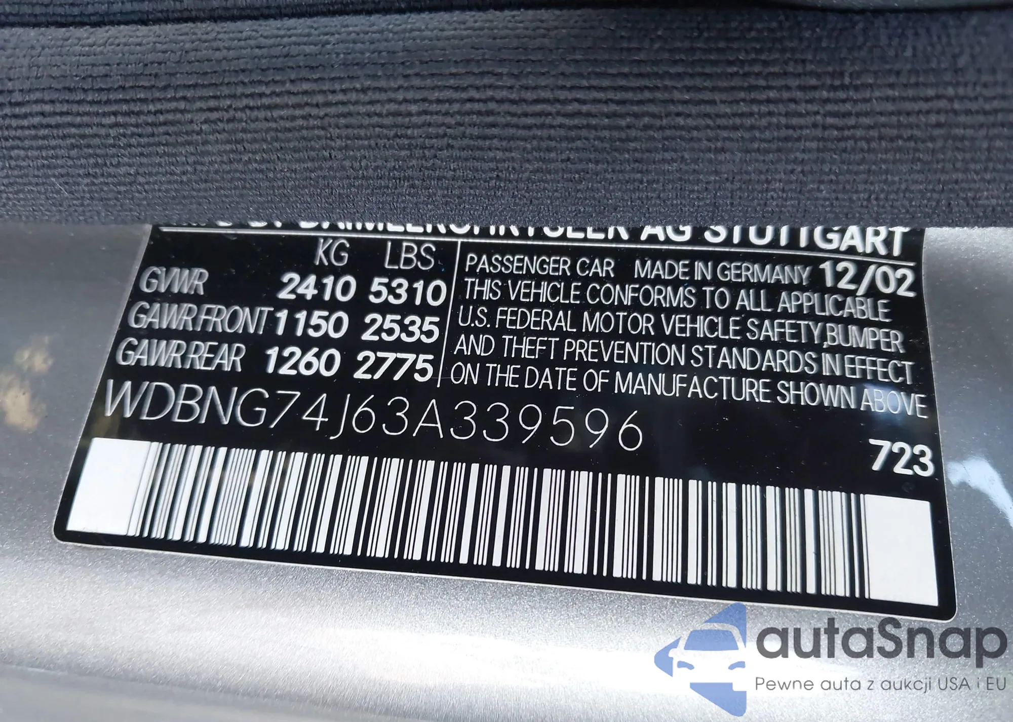 • VIN WDBNG74J63A339596