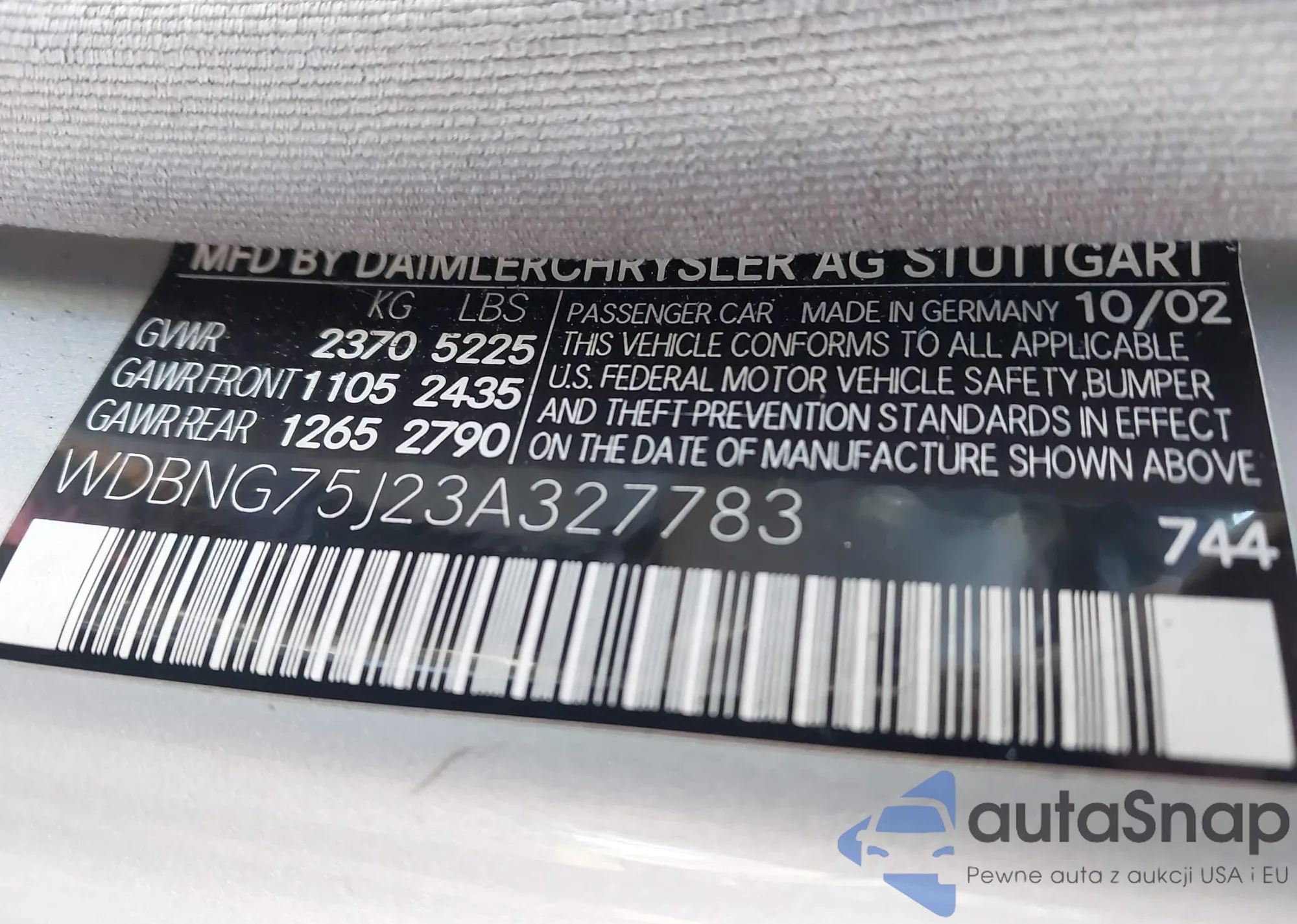 • VIN WDBNG75J23A327783