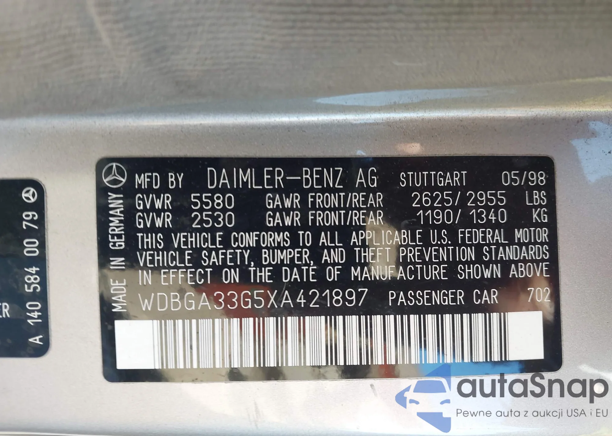 • VIN WDBGA33G5XA421897