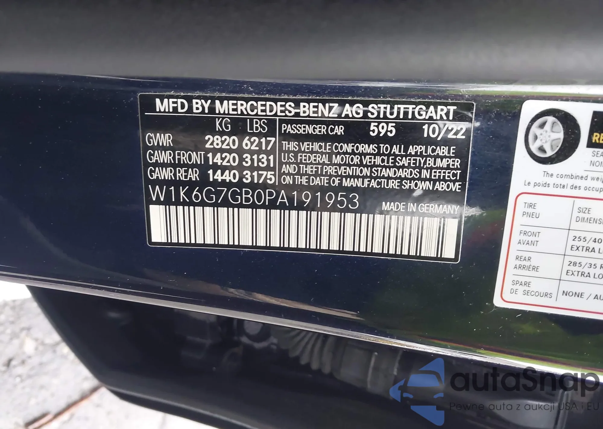 • VIN W1K6G7GB0PA191953