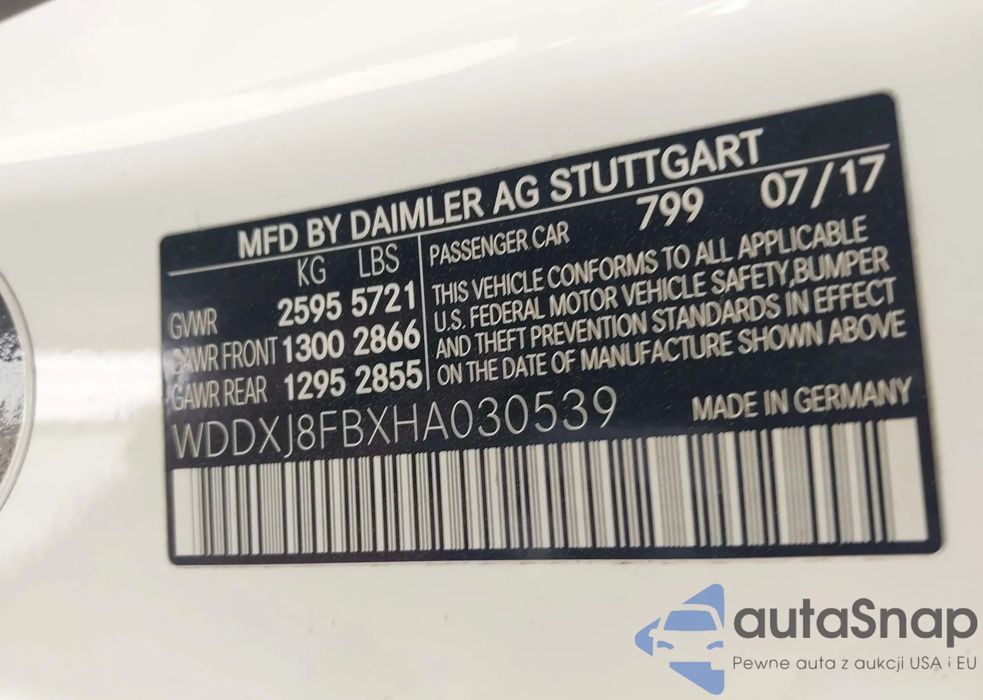 LOT: 41927952 VIN: WDDXJ8FBXHA030539