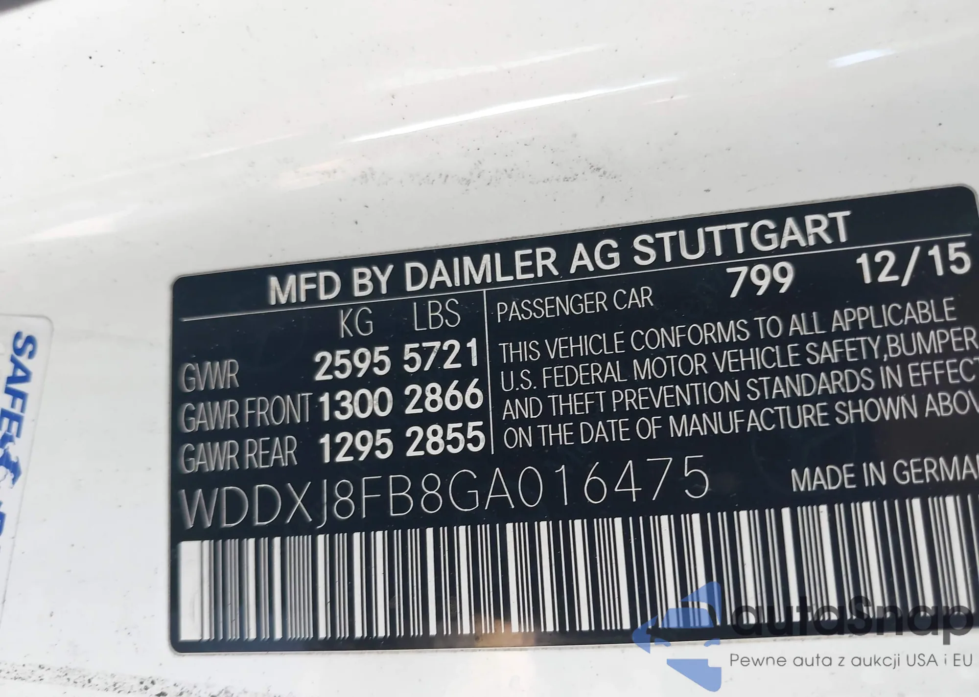 LOT: 43927757 VIN: WDDXJ8FB8GA016475