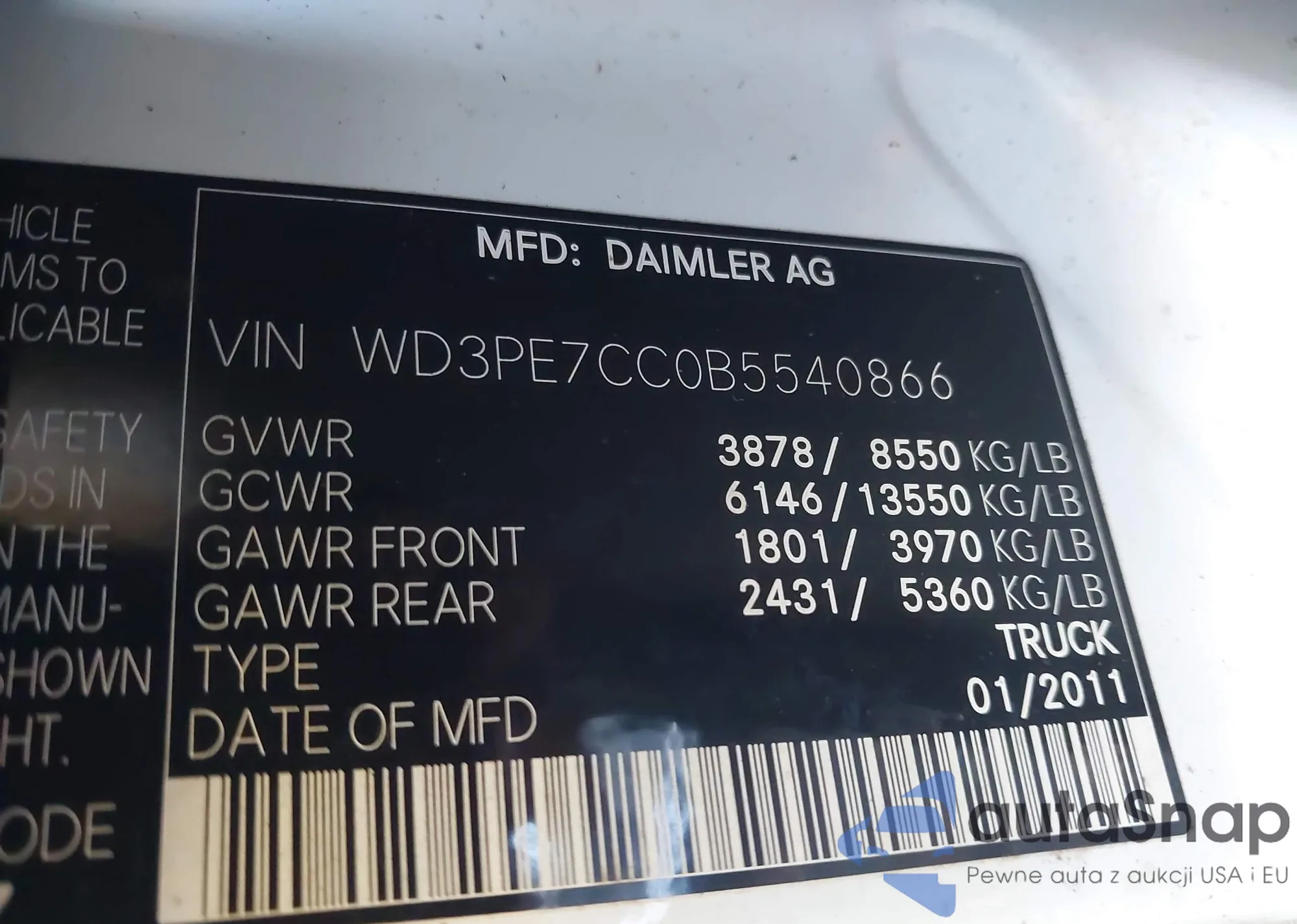 LOT: 43802695 VIN: WD3PE7CC0B5540866