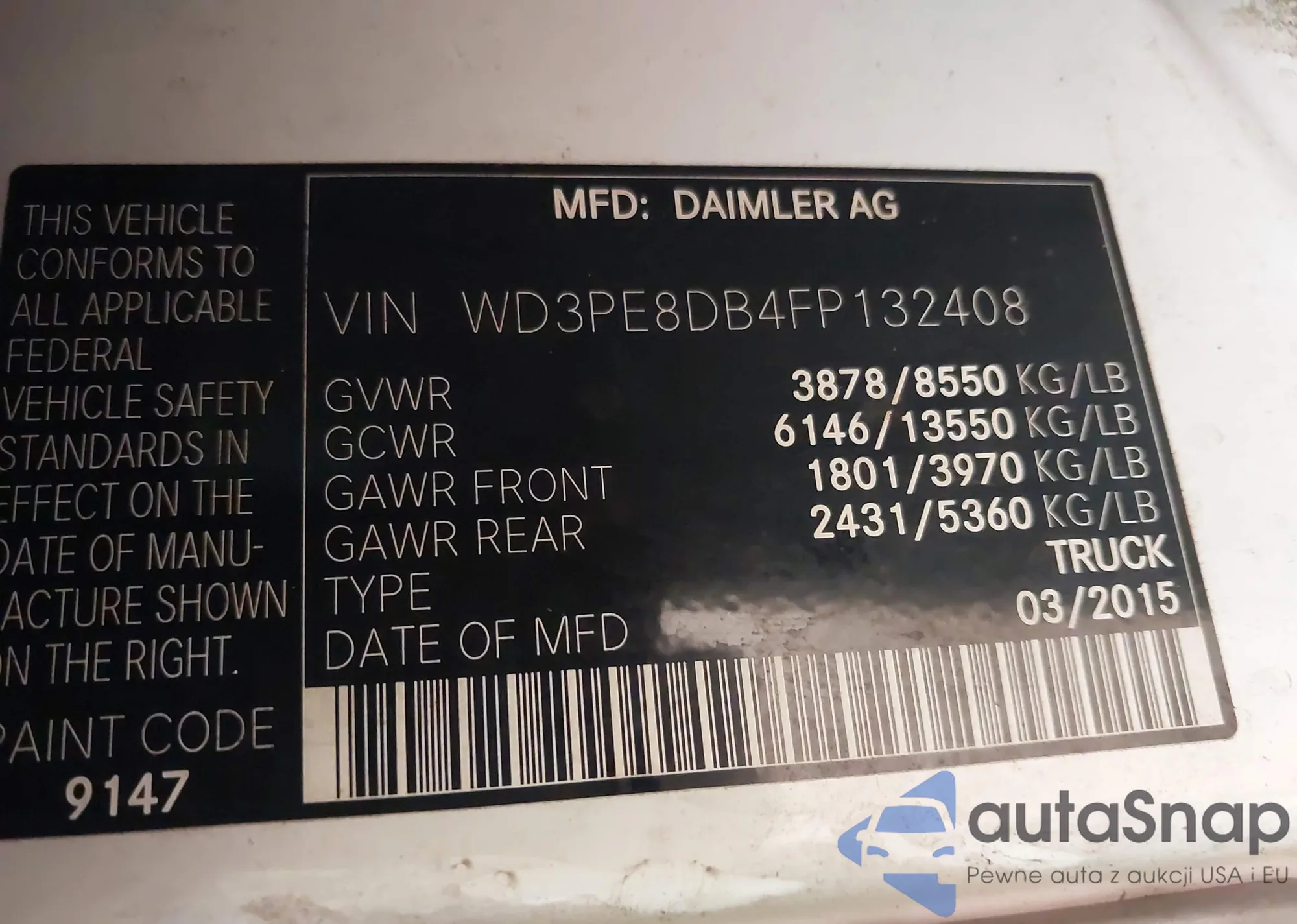 LOT: 43547029 VIN: WD3PE8DB4FP132408