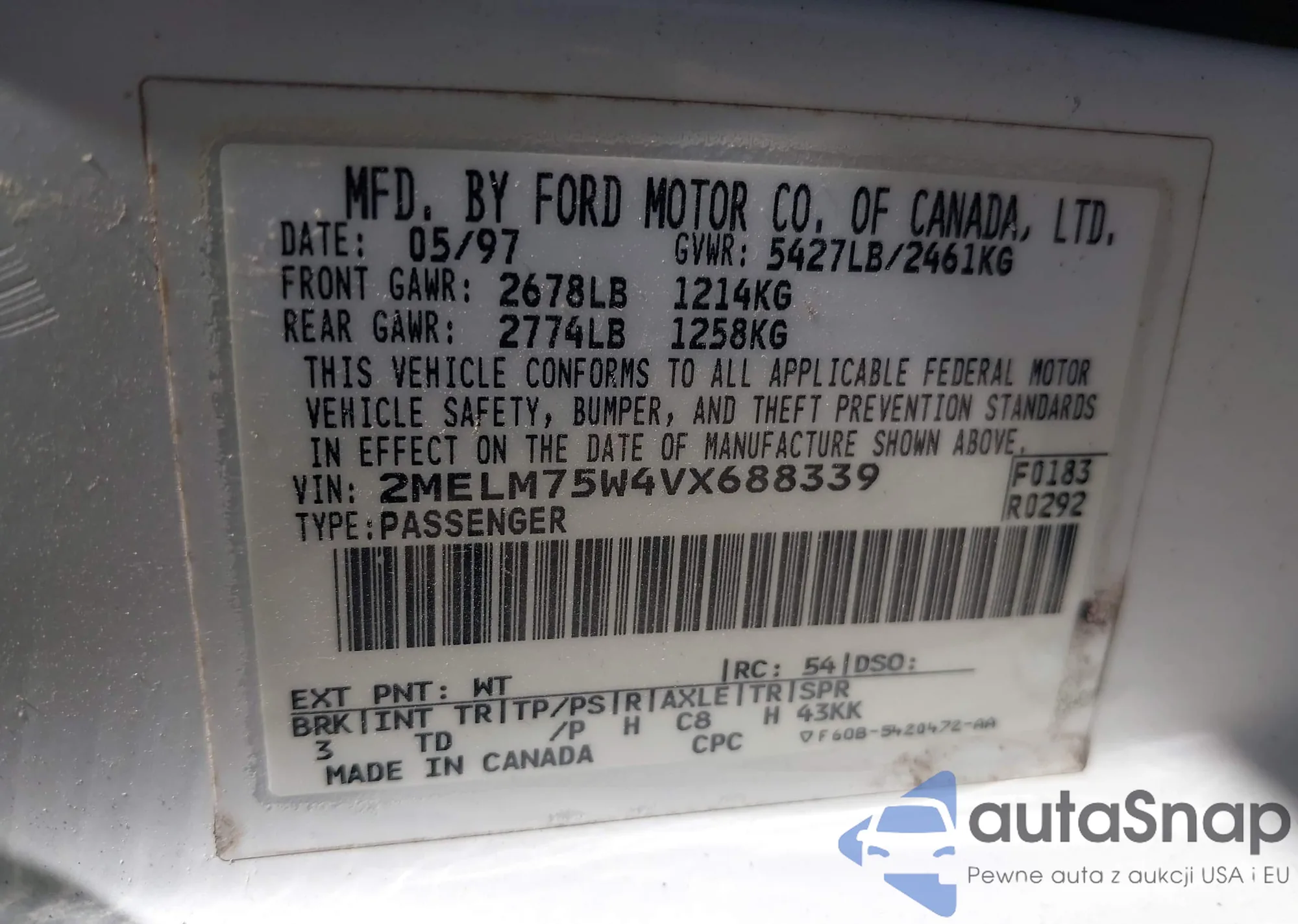• VIN 2MELM75W4VX688339
