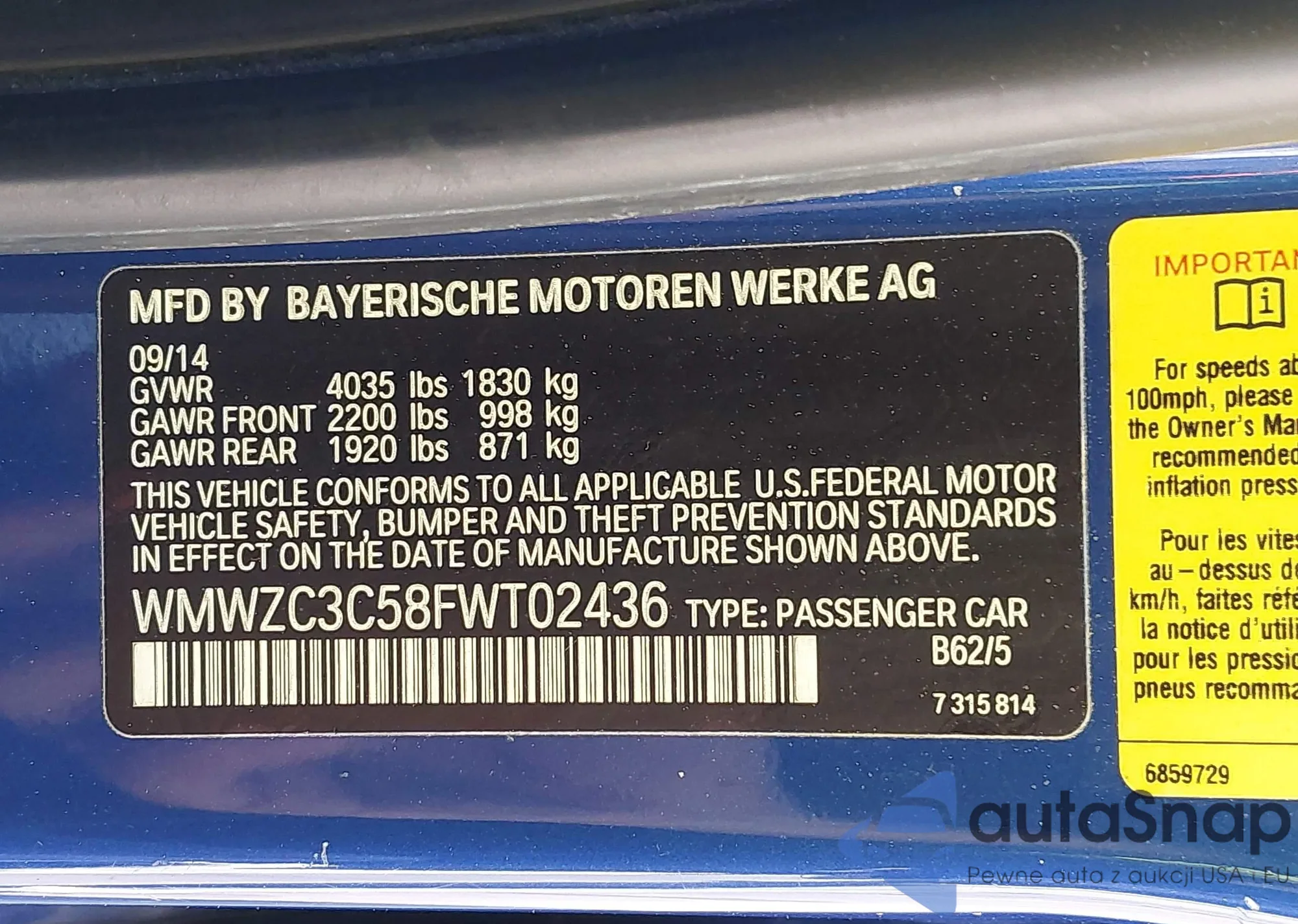 • VIN WMWZC3C58FWT02436