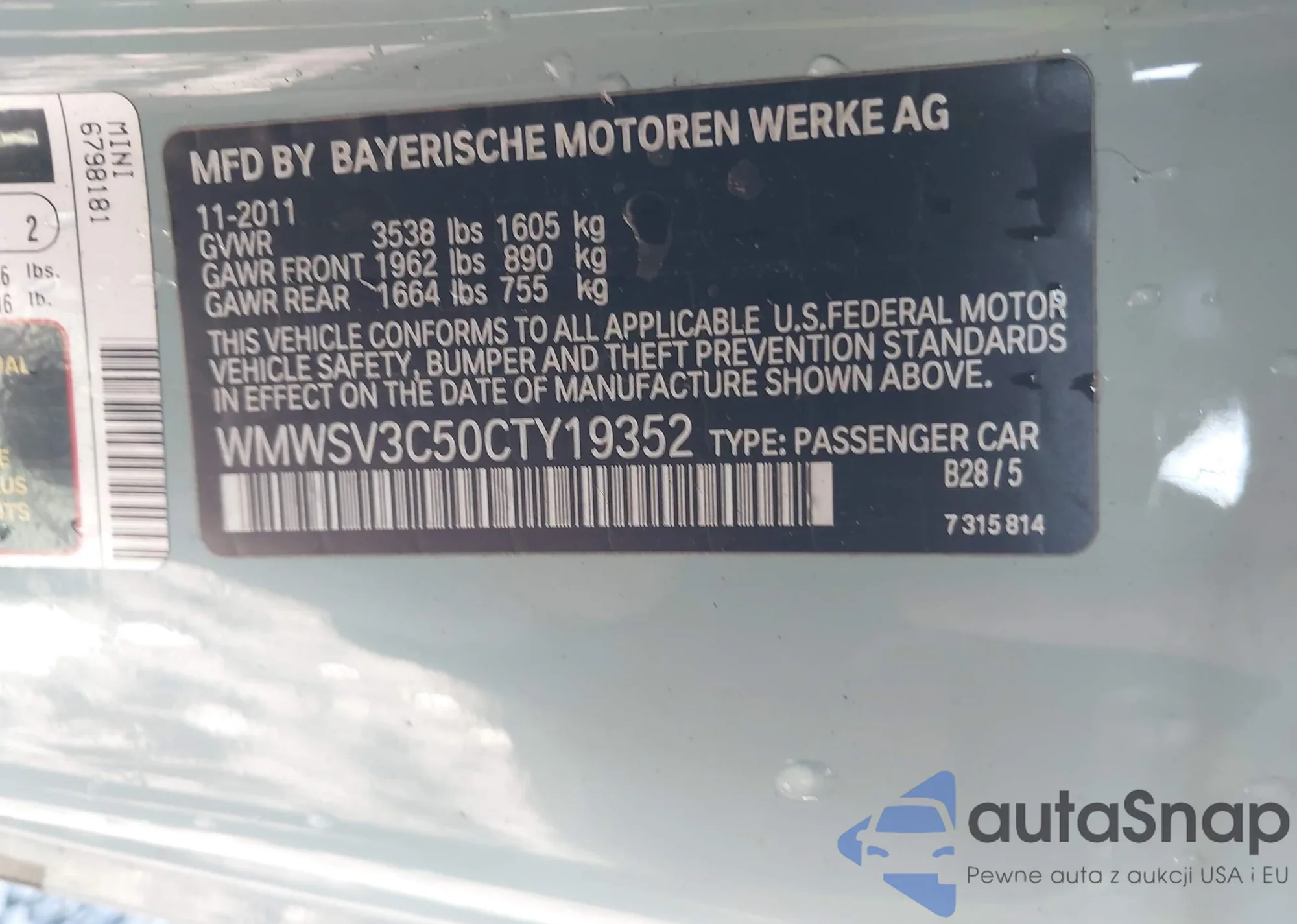 • VIN WMWSV3C50CTY19352