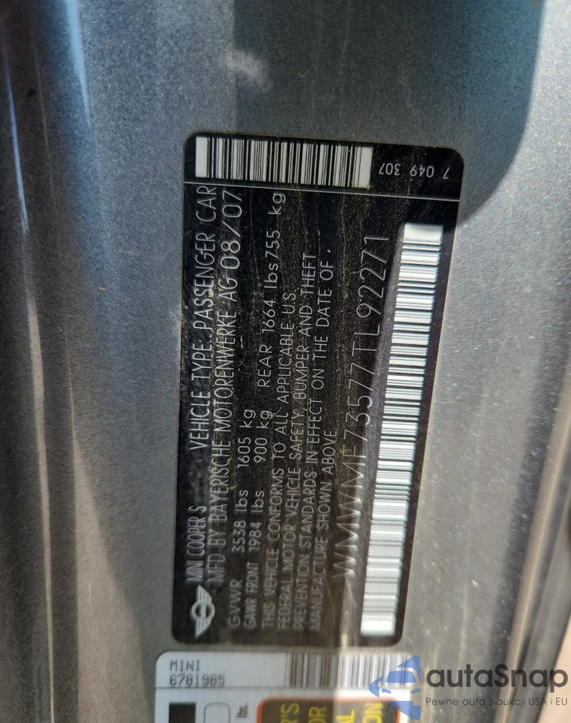 LOT: 80575145 VIN: WMWMF73577TL92271