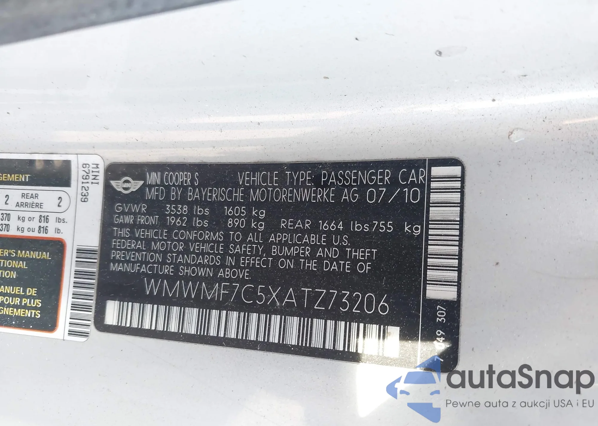 • VIN WMWMF7C5XATZ73206