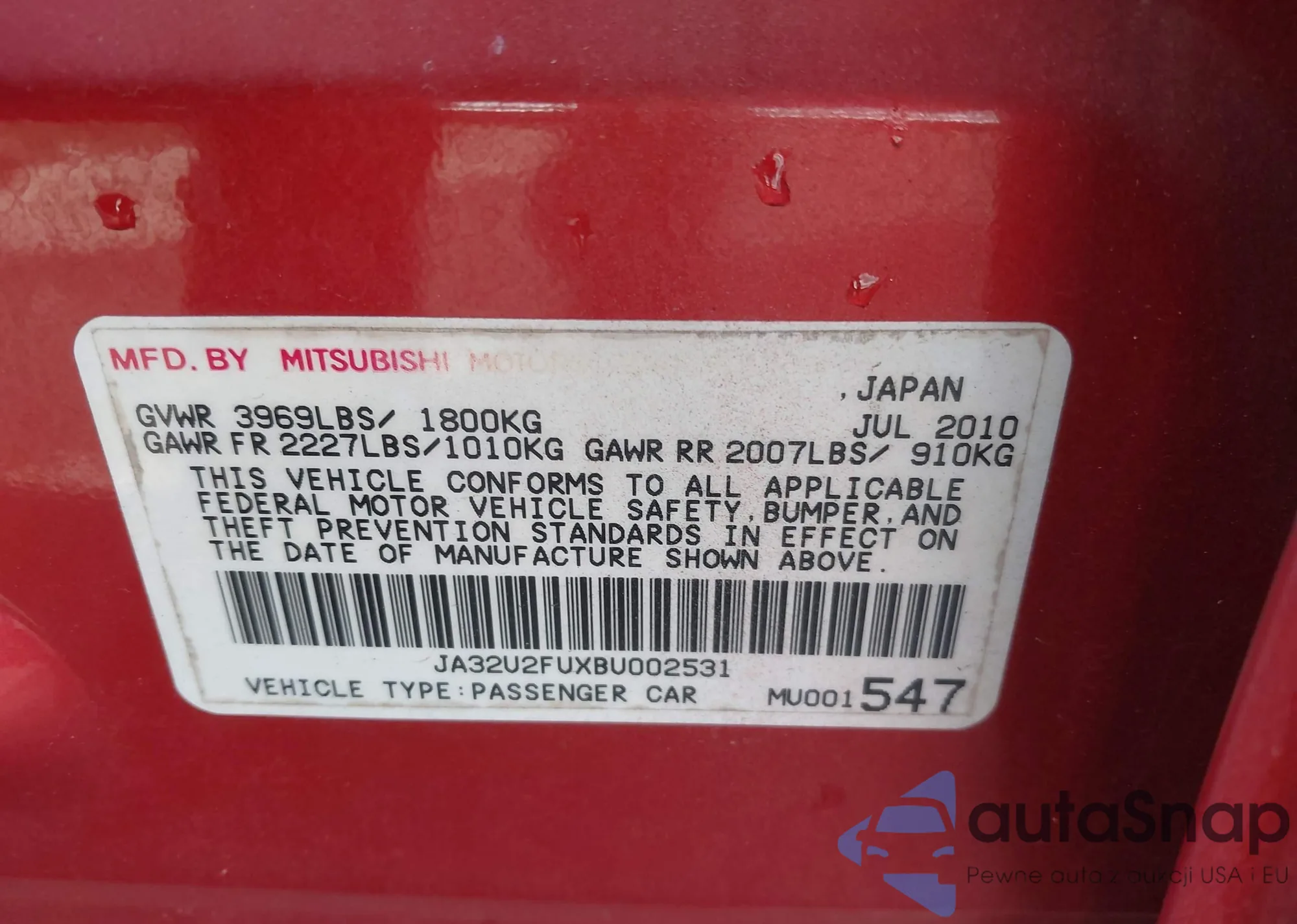 • VIN JA32U2FUXBU002531