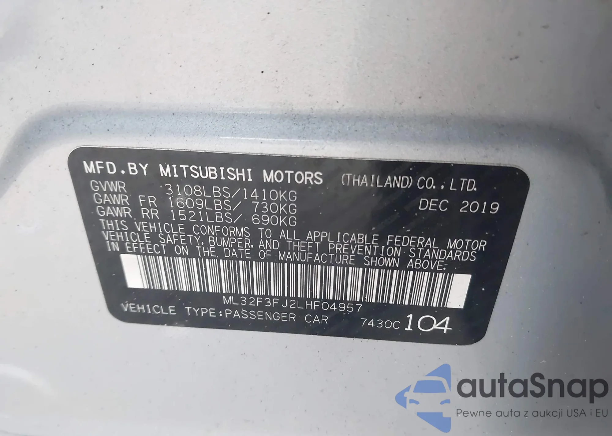 LOT: 43979735 VIN: ML32F3FJ2LHF04957
