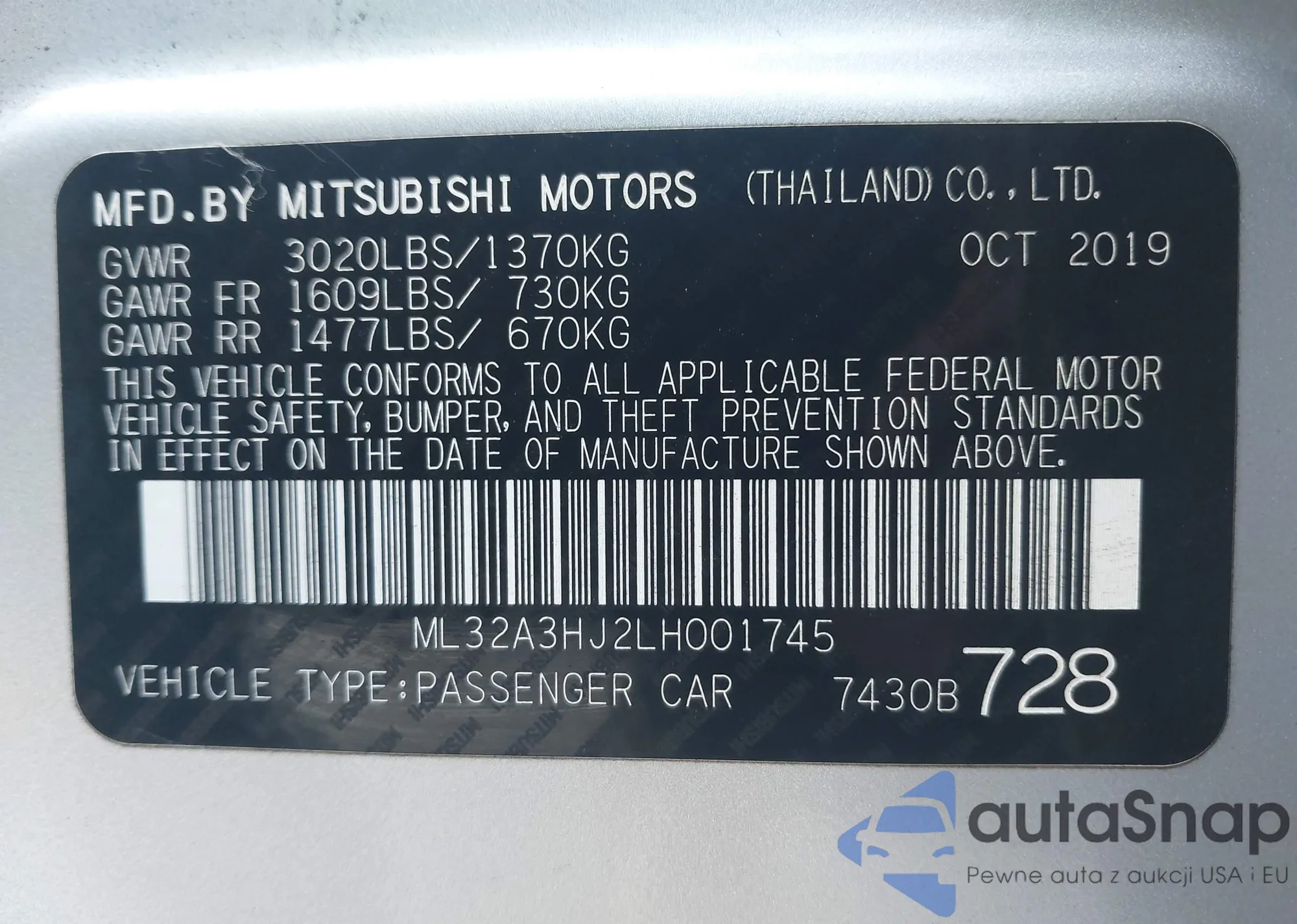 LOT: 44172594 VIN: ML32F3FJ8KHF12835