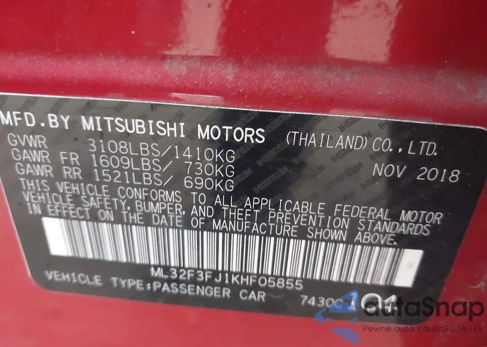 LOT: 44215735 VIN: ML32F3FJ1KHF05855