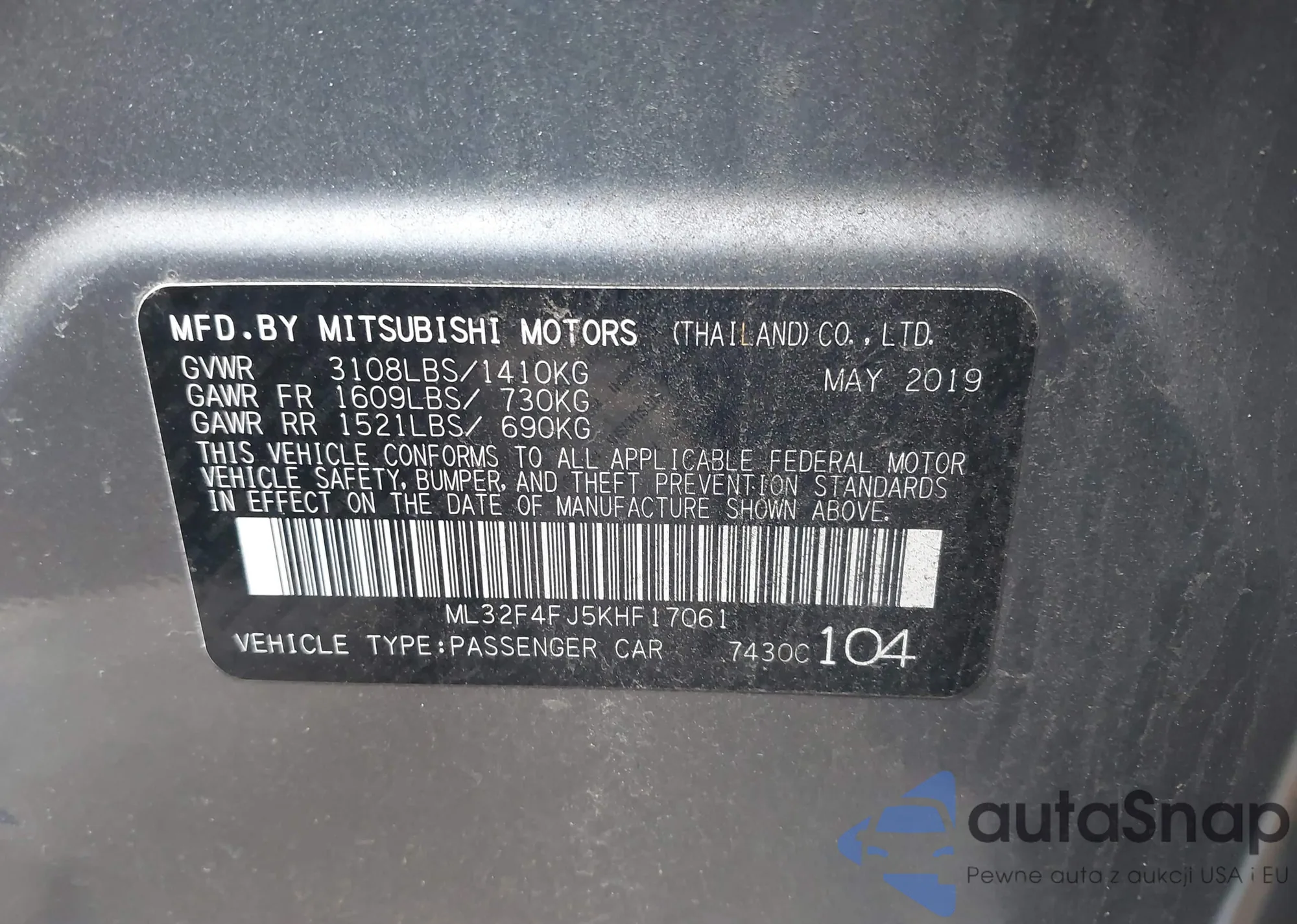 LOT: 44239799 VIN: ML32F4FJ5KHF17061