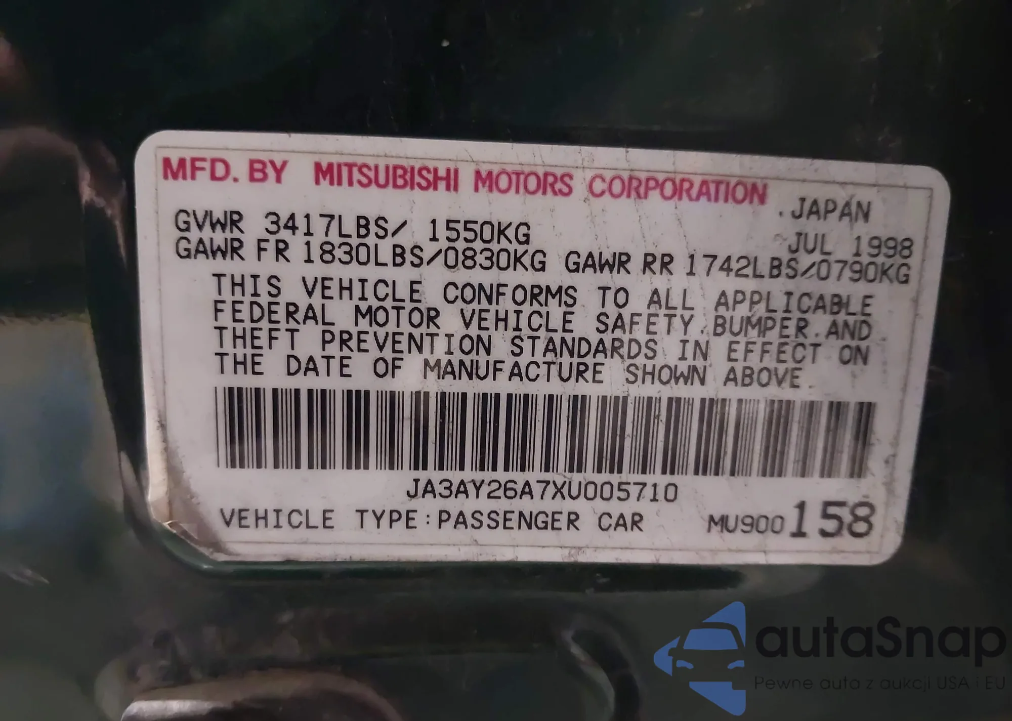 • VIN JA3AY26A7XU005710