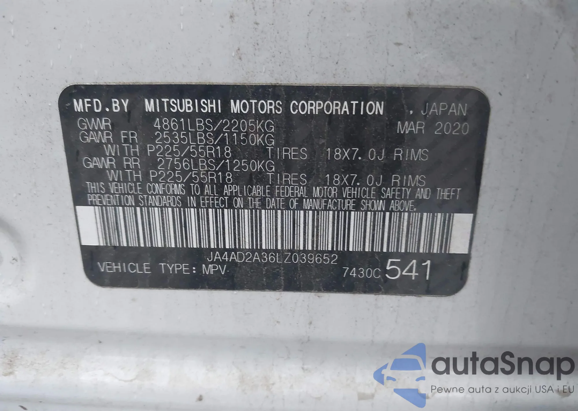 LOT: 43831443 VIN: JA4AP4AU0LU016585