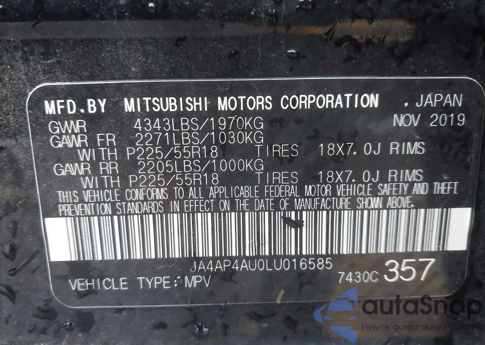 • VIN JA4APUAU4MU021757