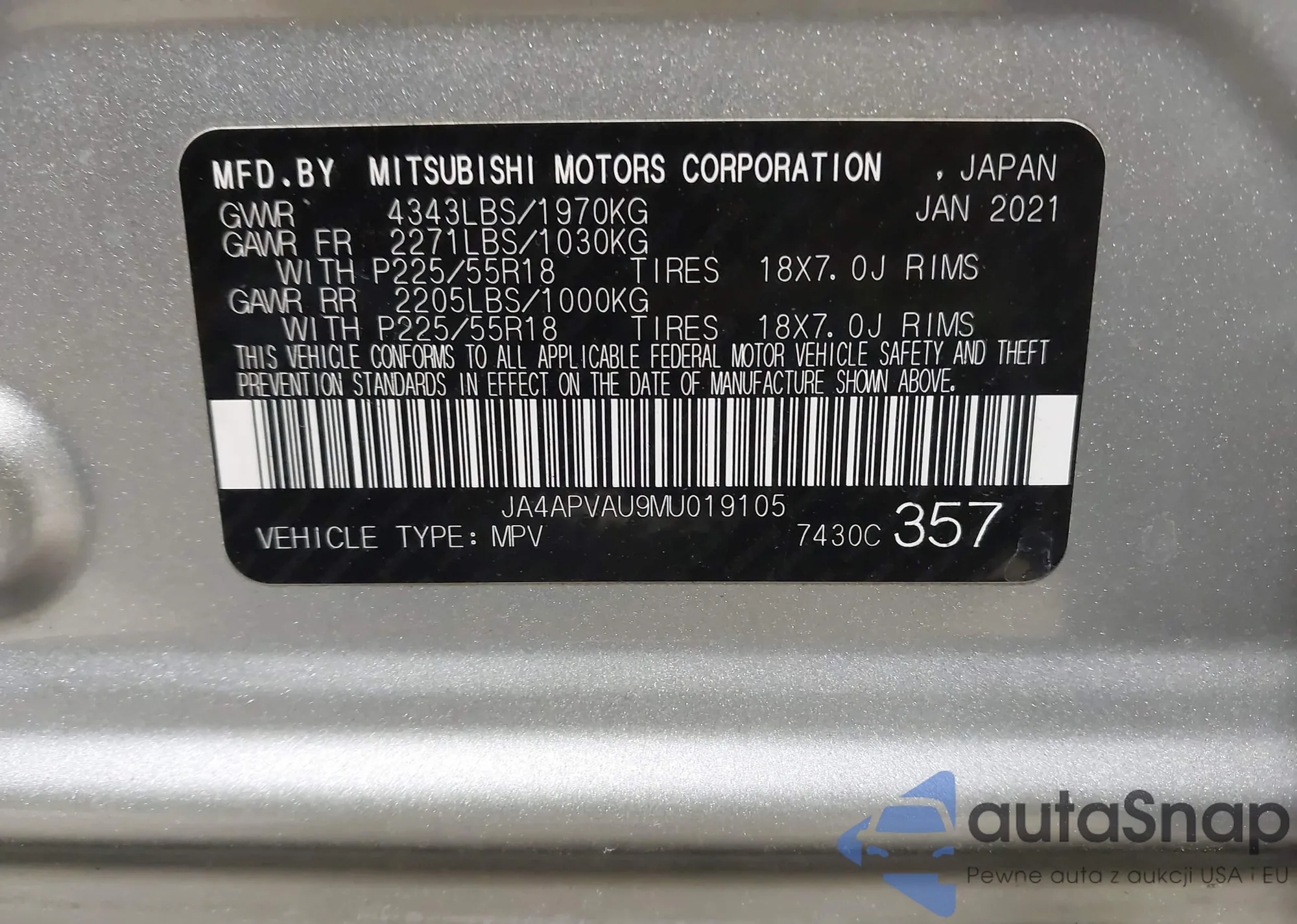 • VIN JA4APVAU9MU019105