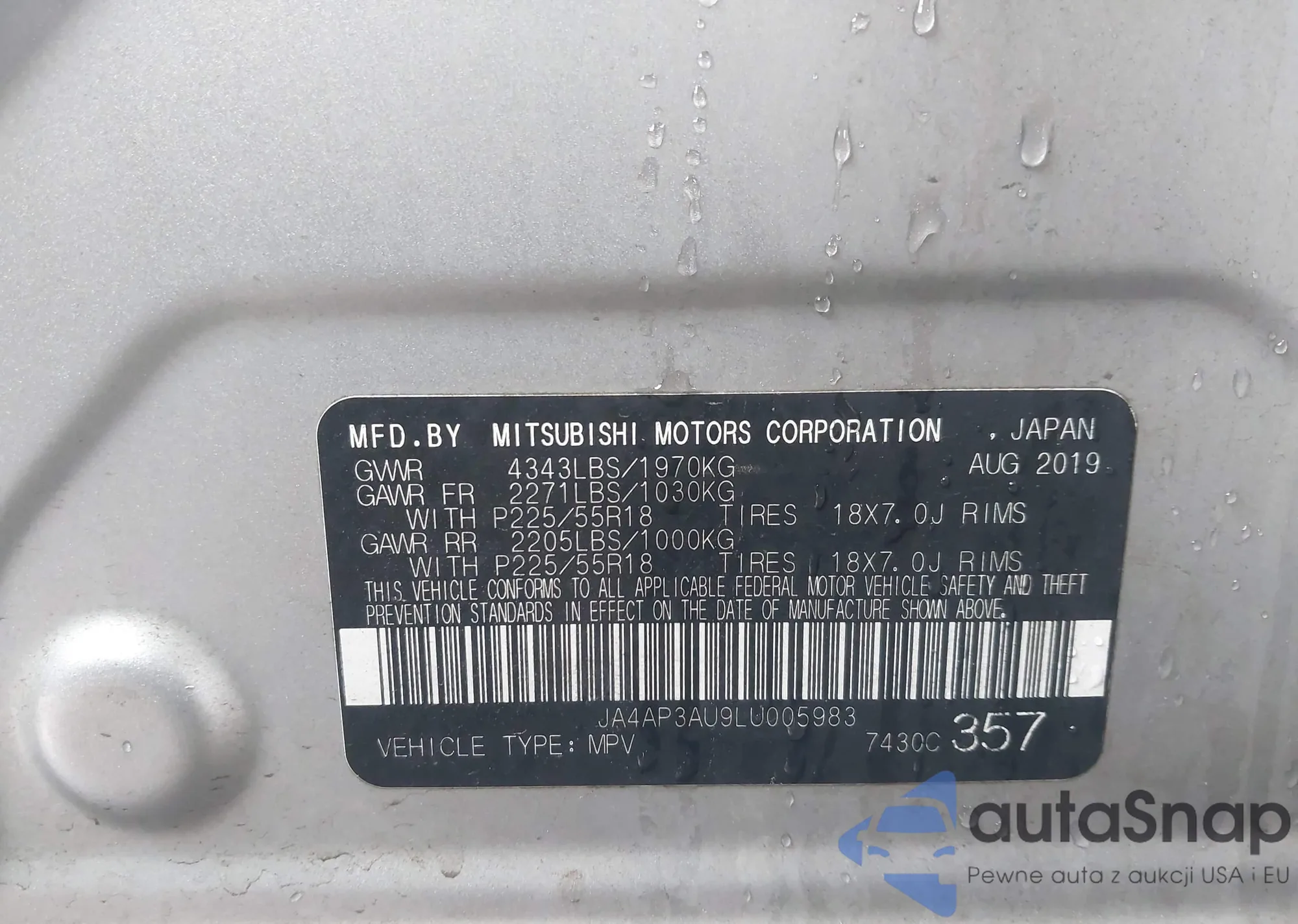 LOT: 44033377 VIN: JA4AP3AU9LU005983