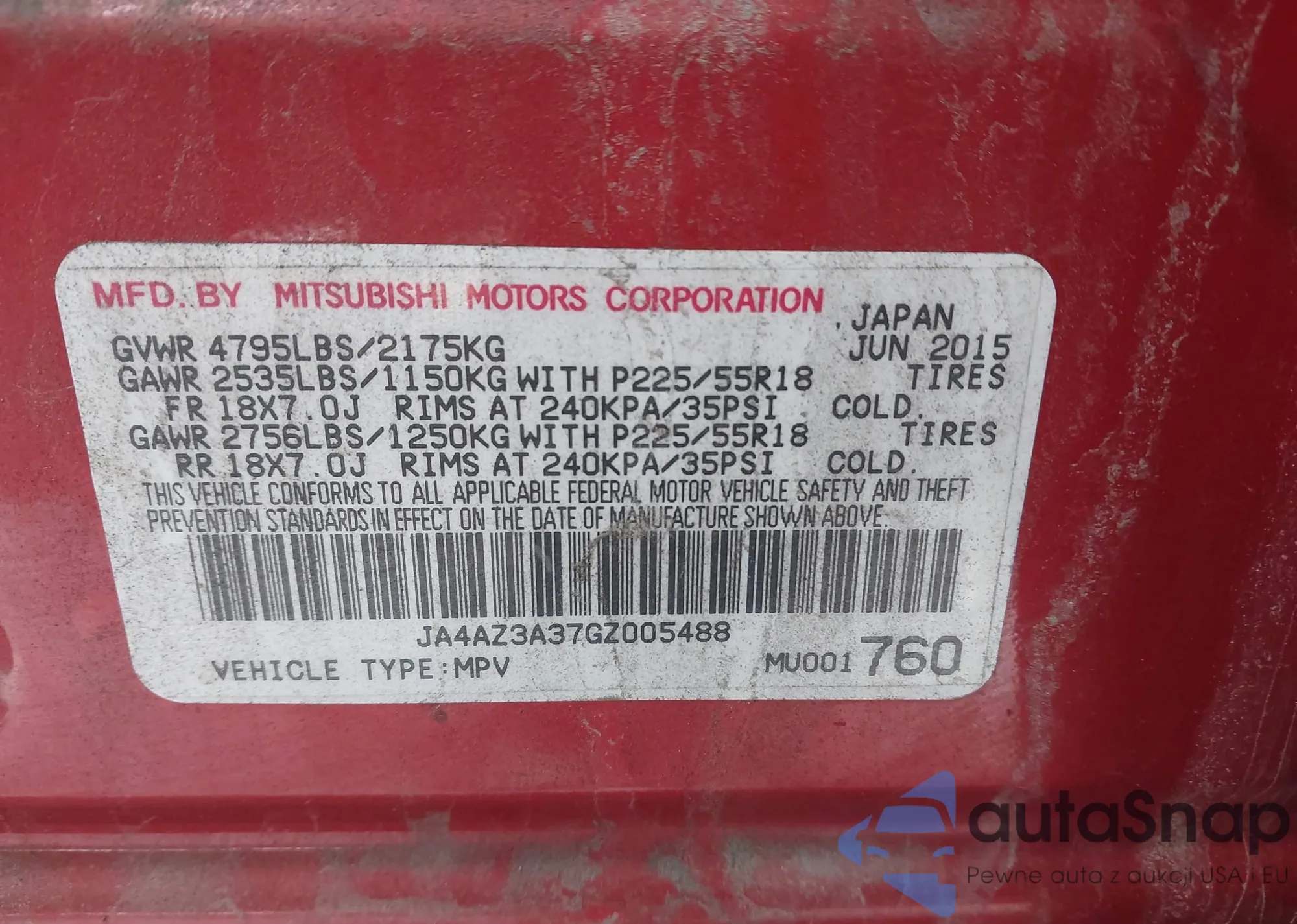 • VIN JA4AP3AW0JU002100